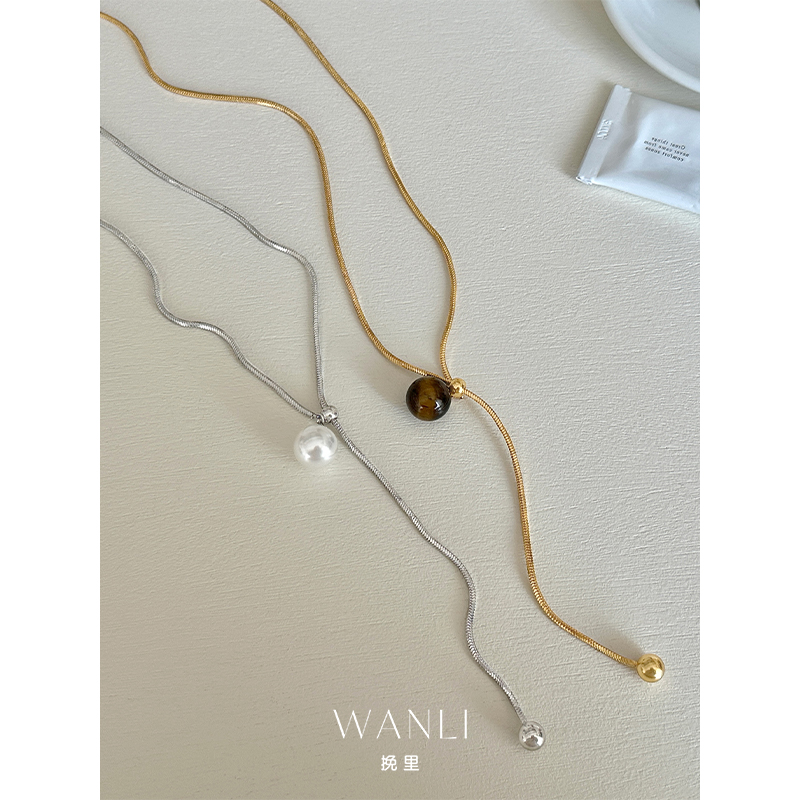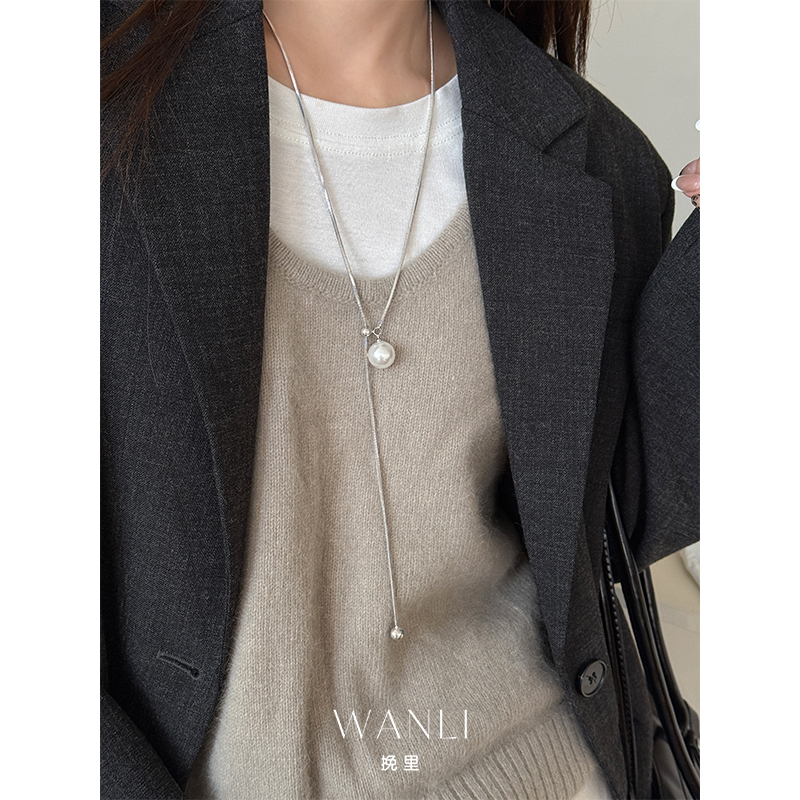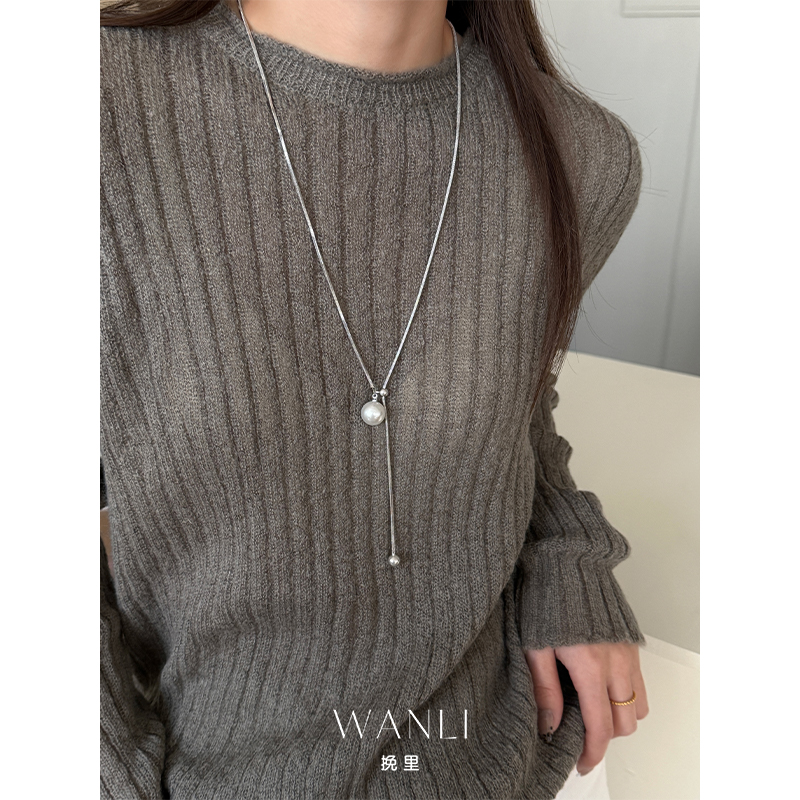 挽里珍珠项链女秋冬轻奢高级感毛衣链抽拉设计精致百搭时尚配饰