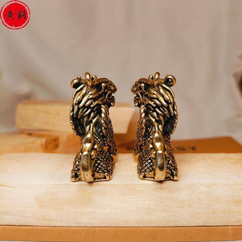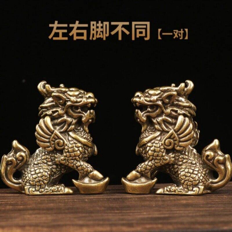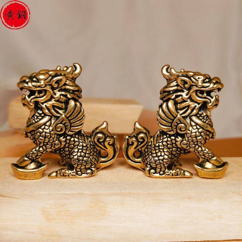 黄铜麒麟摆件卧室纯铜元宝麒麟一对桌面家居书房开店公司展示摆台