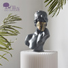 留连现代风金属面罩灰色女孩树脂雕像雕塑艺术头像意式轻奢摆件