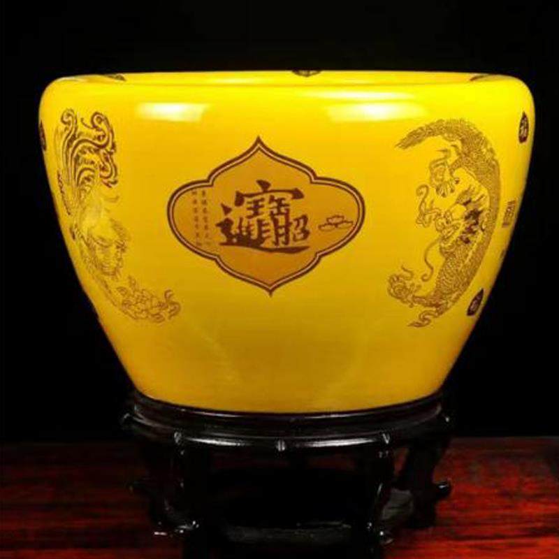 景德镇陶瓷聚宝盆风水招财缸玄关装饰摆饰花盆养鱼缸开 业礼品包
