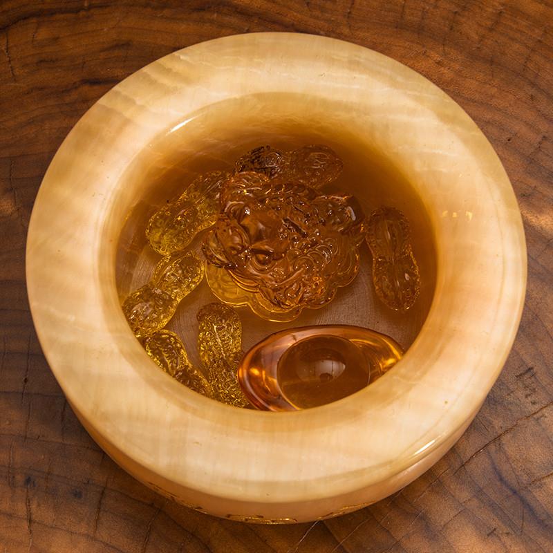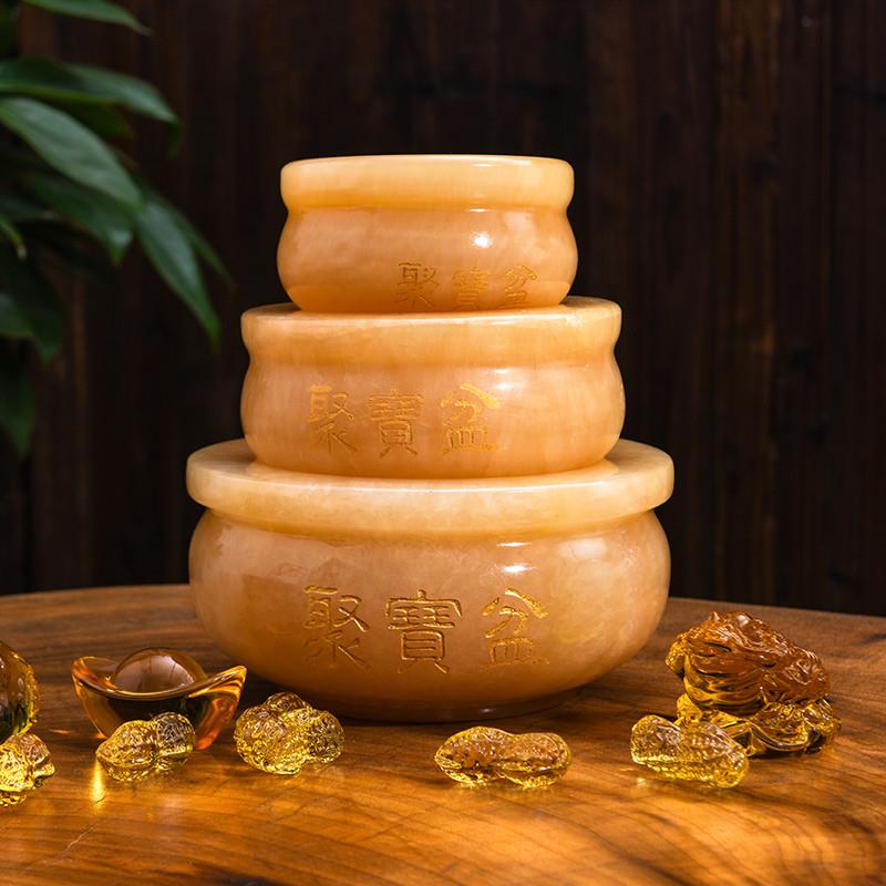 现货大小号天然米黄玉元宝聚宝盆摆件 招财聚财转运客厅家居装饰
