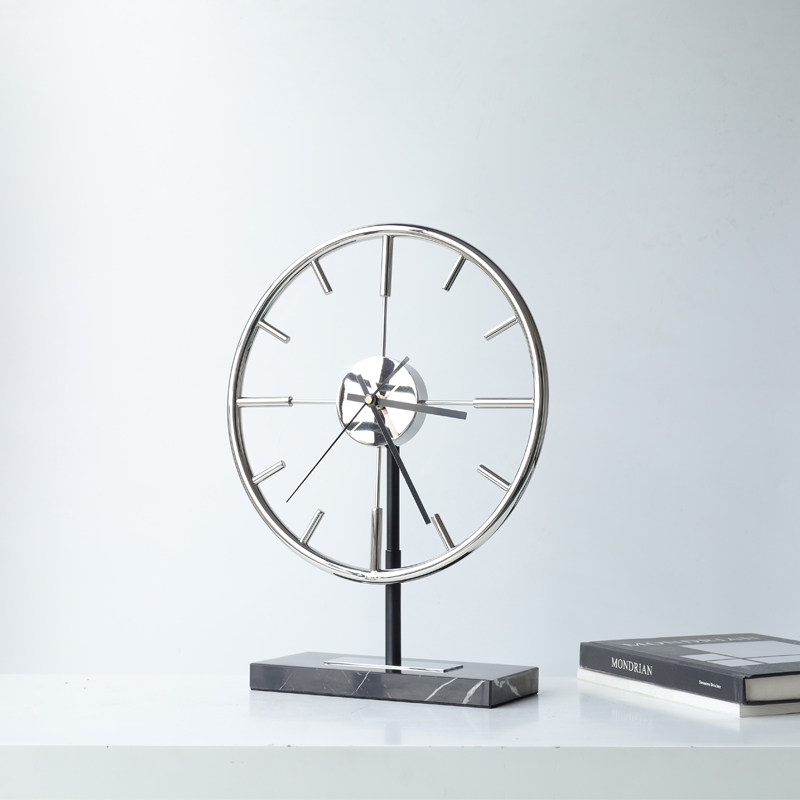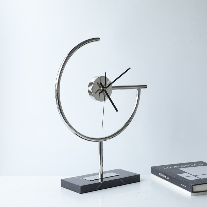 北欧时尚金属表摆件书房玄关电视柜几何艺术客厅样板间时钟装饰品