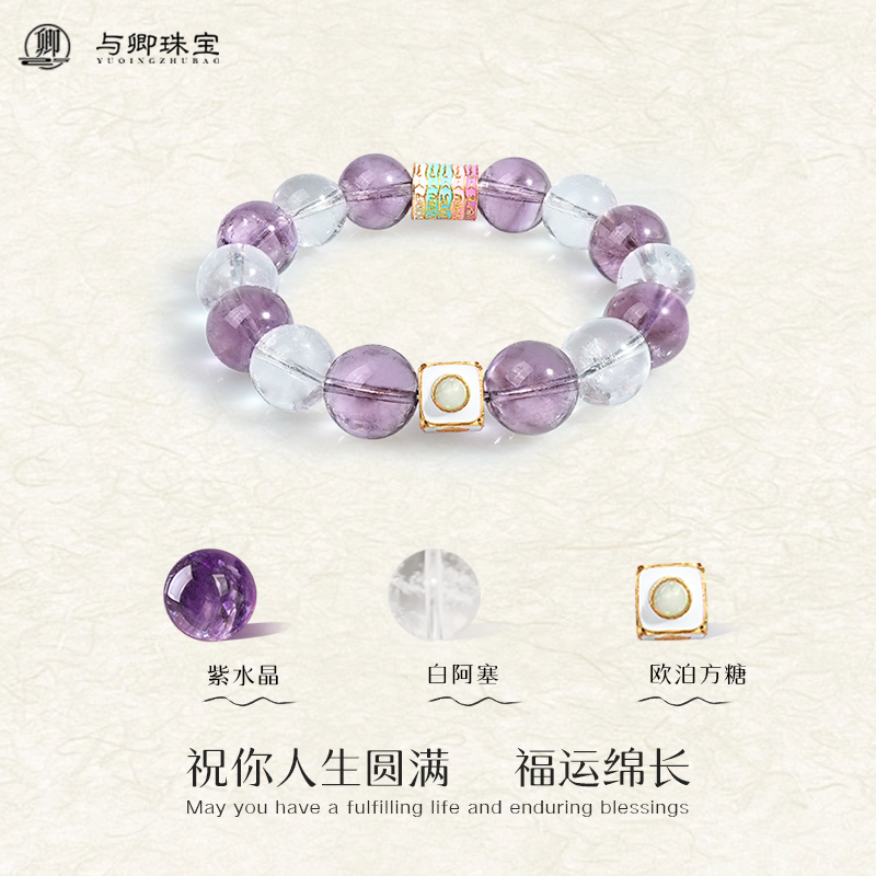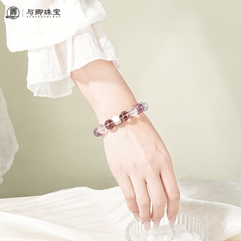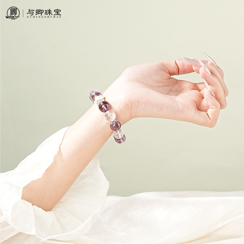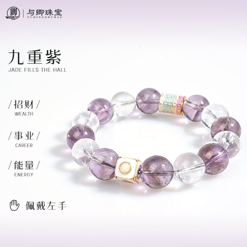 【九重紫】天然巴西紫水晶手链女白阿赛水晶手串男