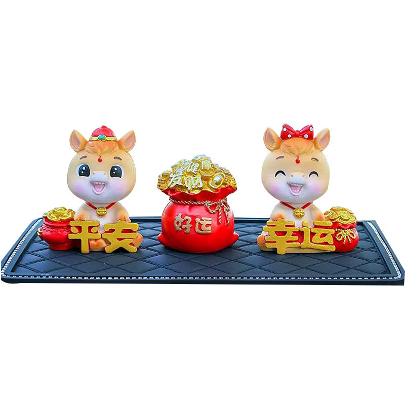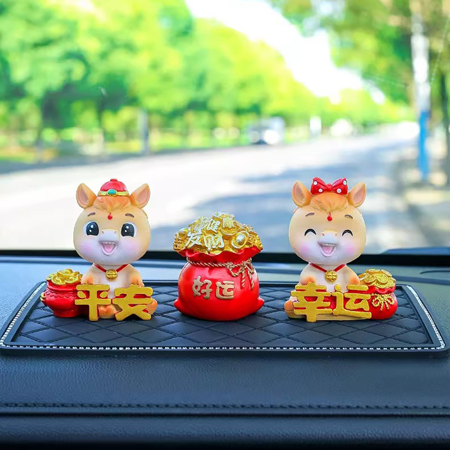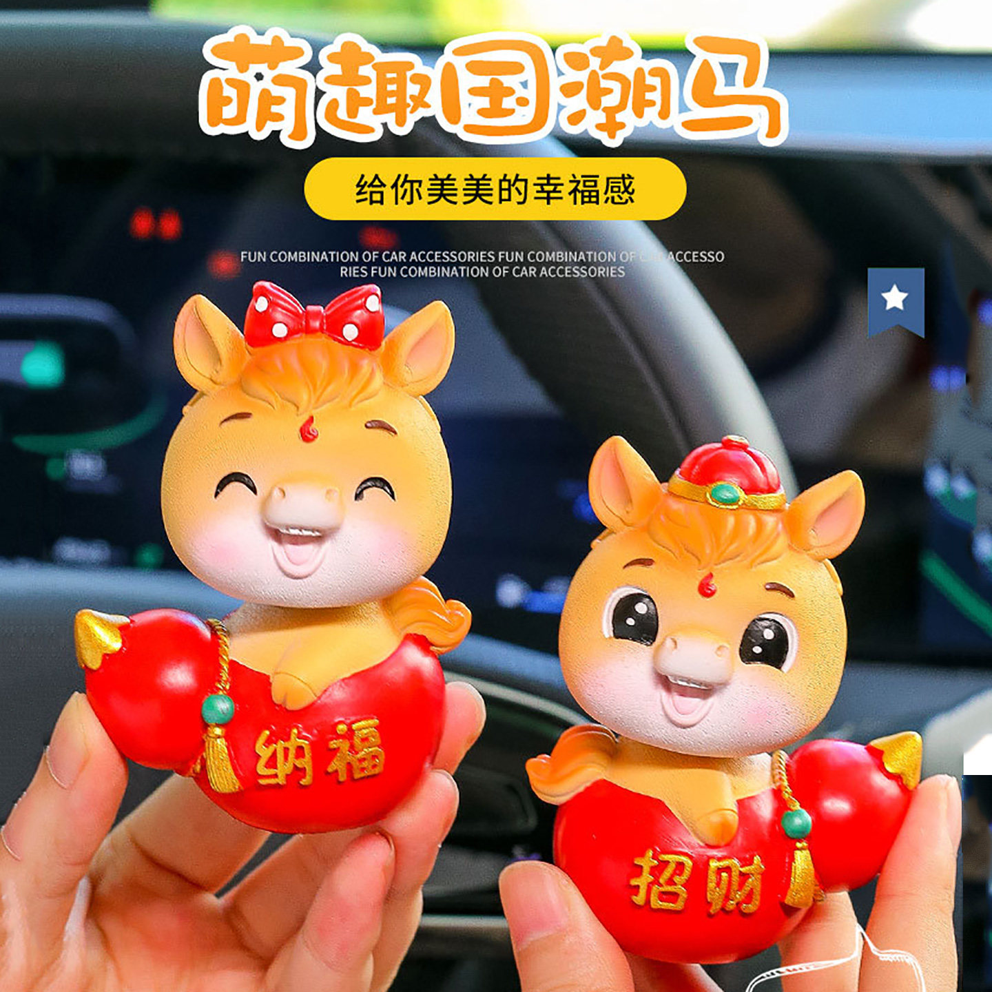马年生肖吉祥物公仔车载摇头摆件汽车内中控台装饰品喜庆新年礼物