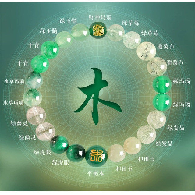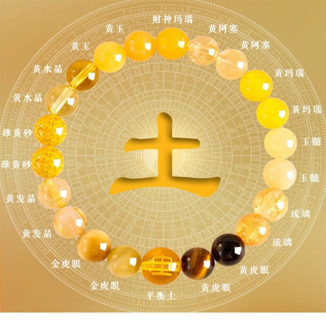五行手链补缺水木火土金天然水晶黄虎眼招财多宝好运平安手串礼物