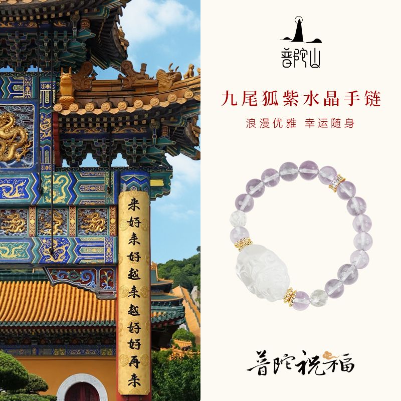 普陀山九尾狐紫水晶手链九紫离火小众设计手串送闺蜜女友礼物礼盒