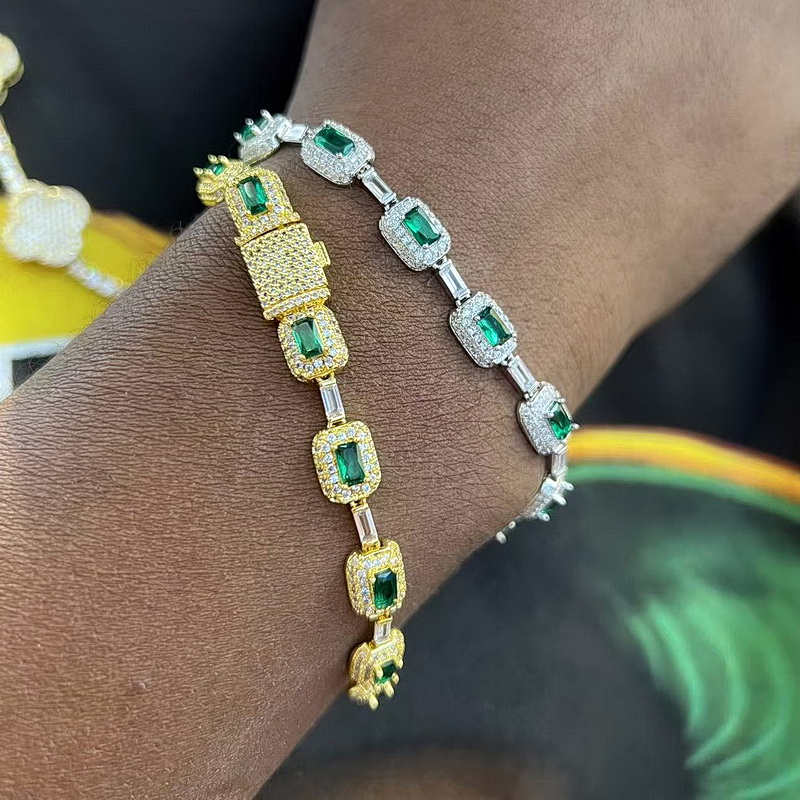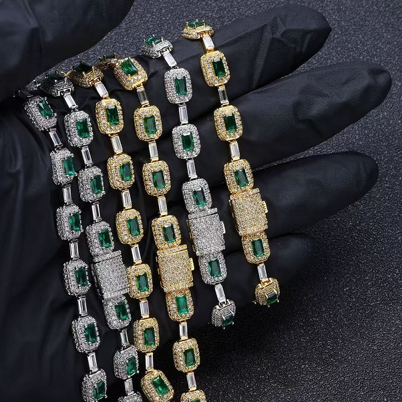 faza祖母绿手链轻奢小众精致手饰潮男女首饰嘻哈满钻手环高级礼物