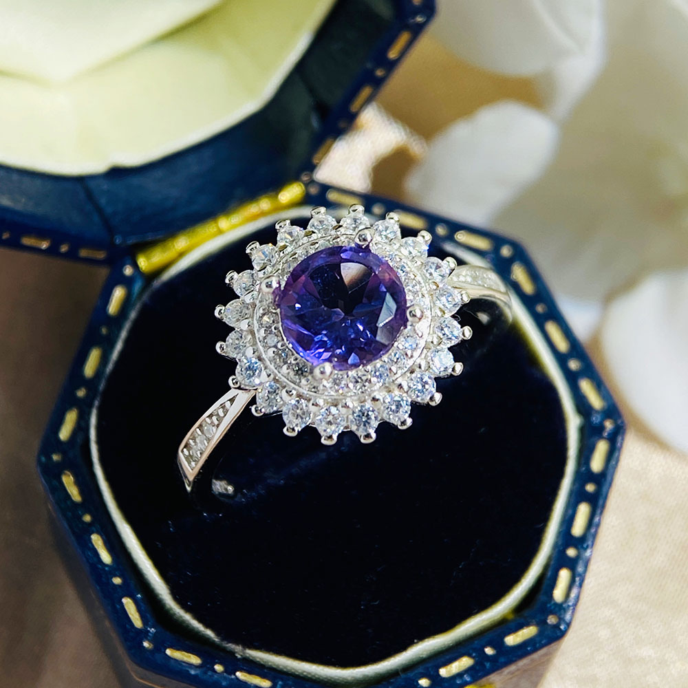 豪华满钻S925纯银镀18k金戒指空托闭口圆形6 7 8mm戒指托小众女