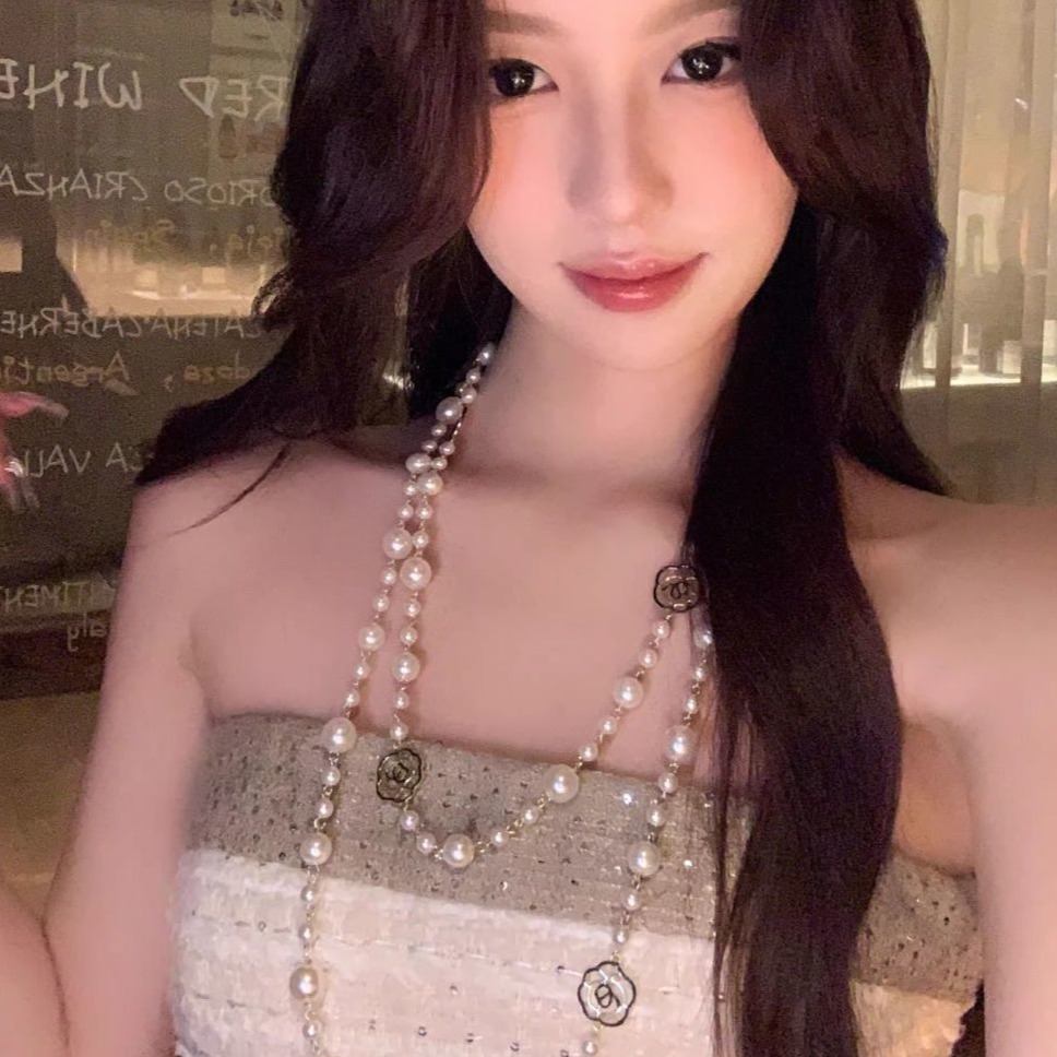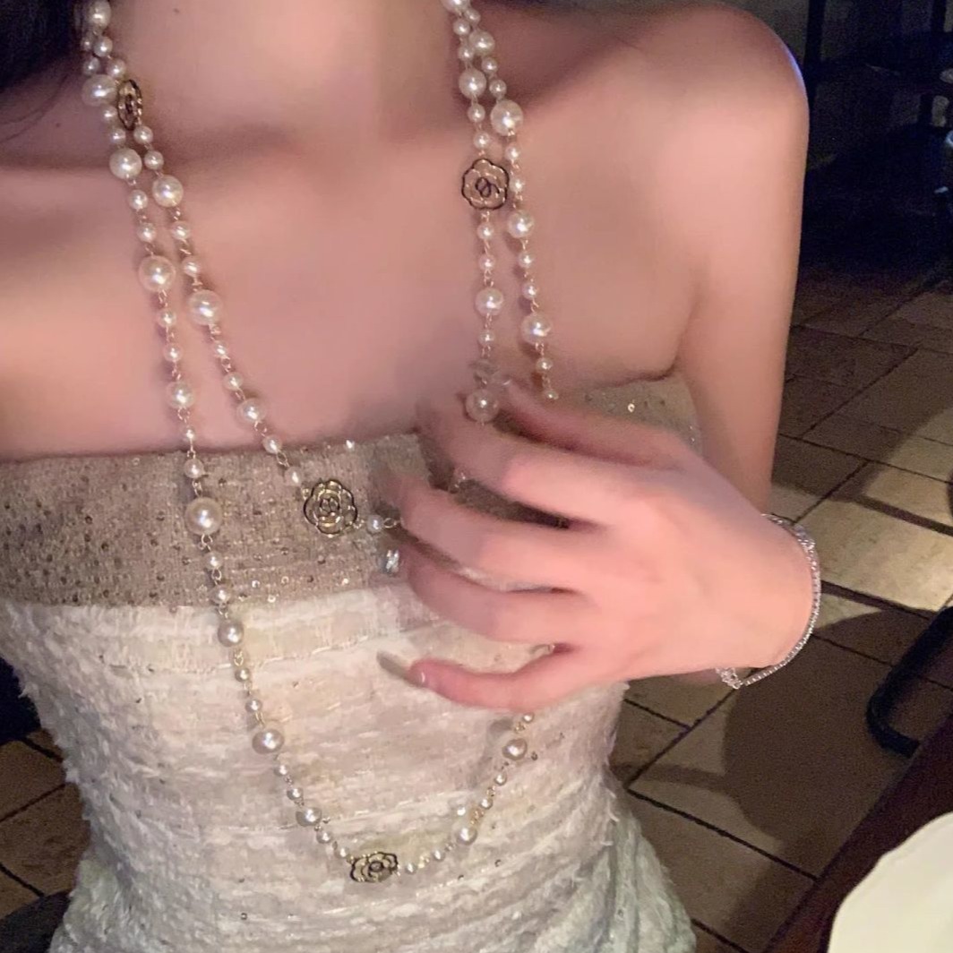 【蜜桃茶】矜贵小香 长款山茶花珍珠项链高级感叠戴中式旗袍配饰