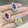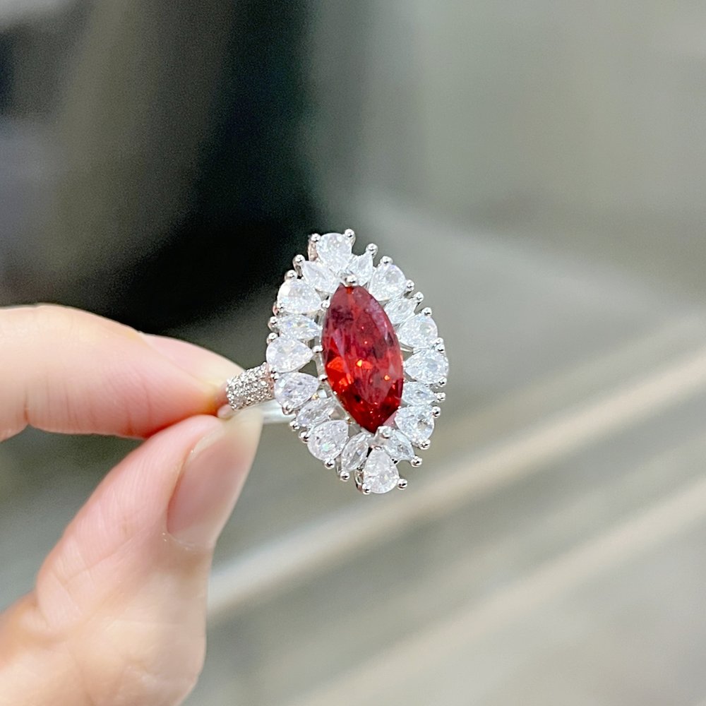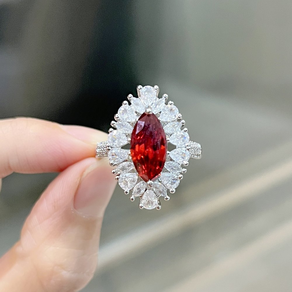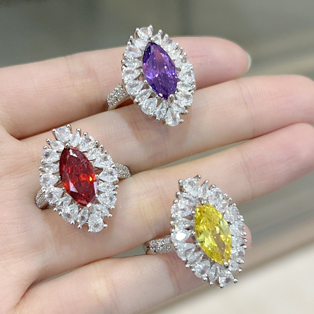 新款仿真红钻石马眼钻开口戒指奢华高端设计红钻紫黄锆石戒指百搭