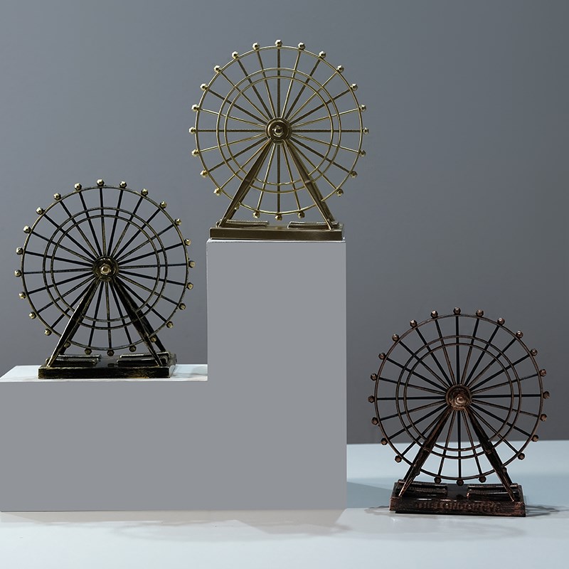 欧式复古铁艺做旧工艺摩天轮模型创意家居客厅酒柜装饰Z品摆件摆