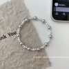 S925纯银施家真多麻灰色间隔银珠手链小众设计百搭ins气质高级