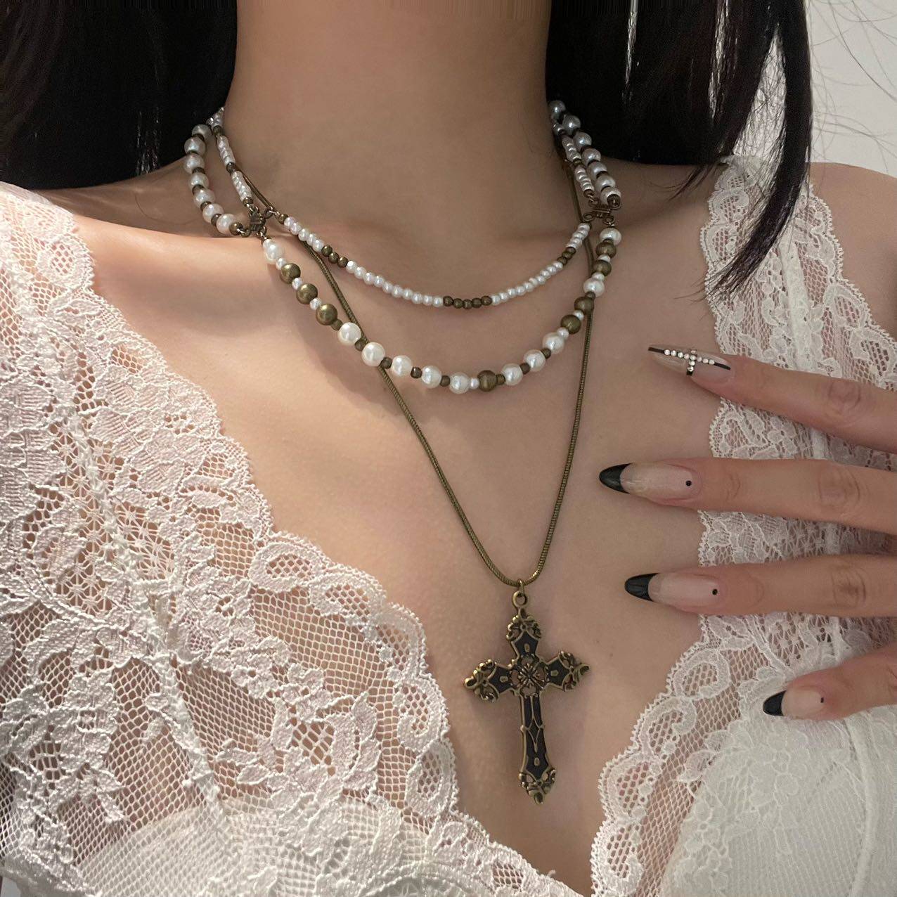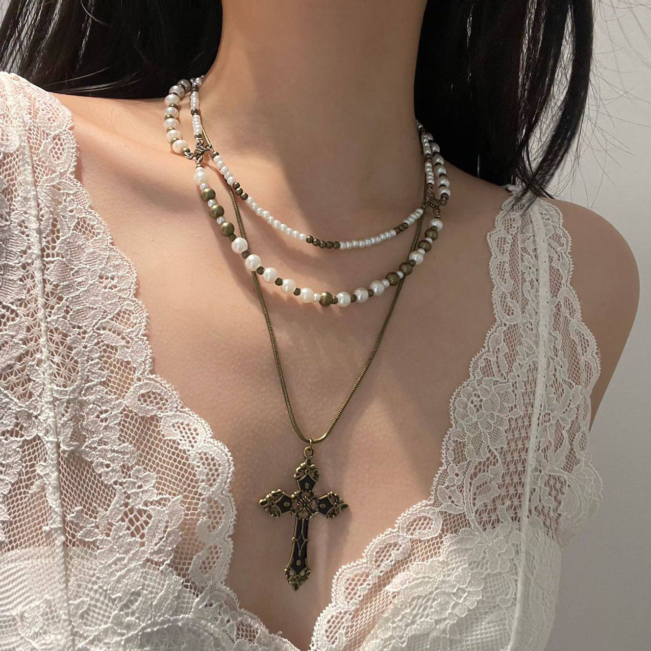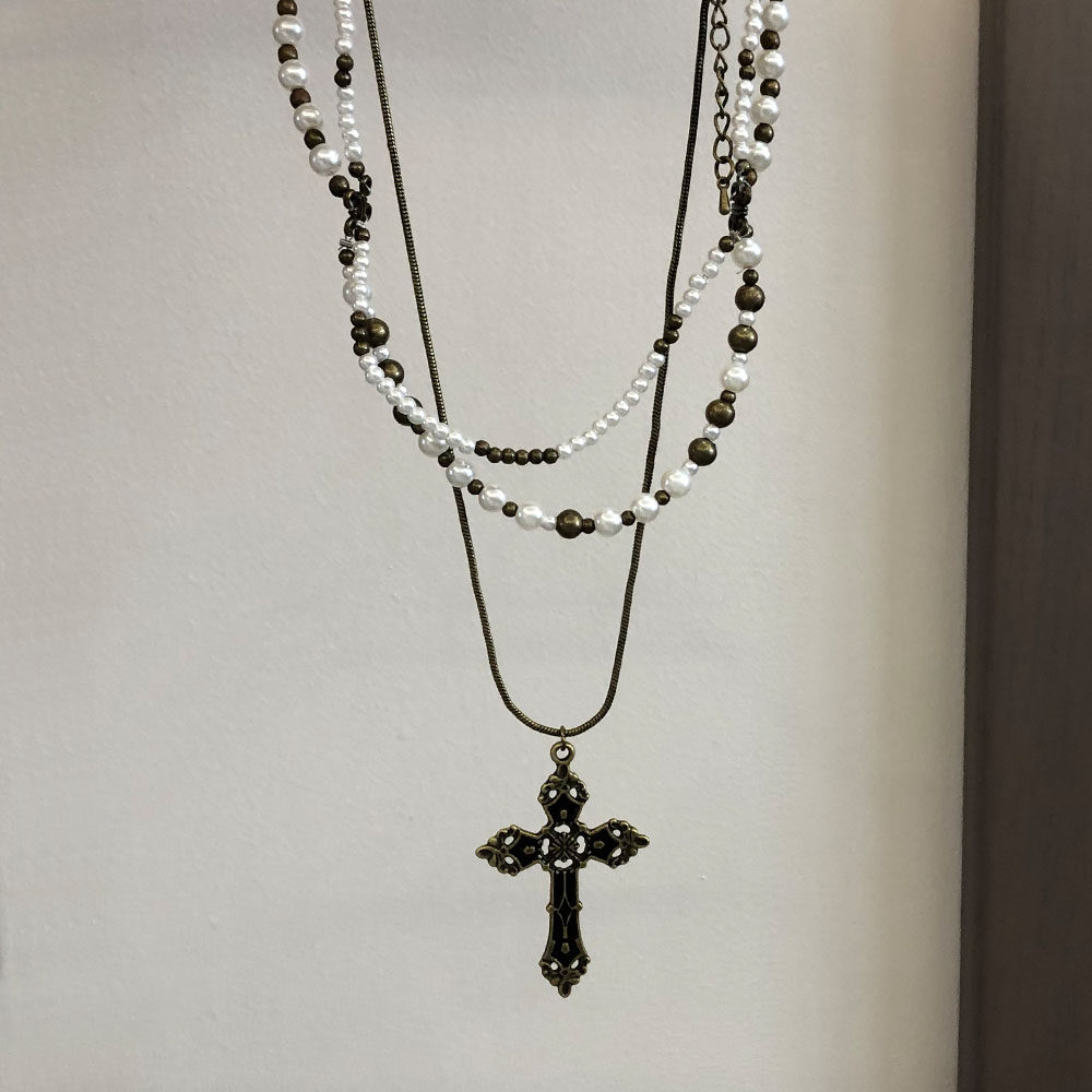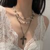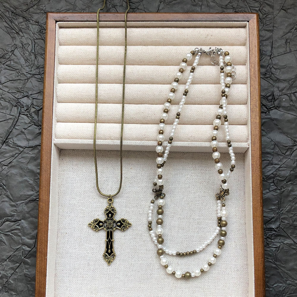 欧美复古十字架项链女高级感choker锁骨链颈链多层叠带毛衣链配饰