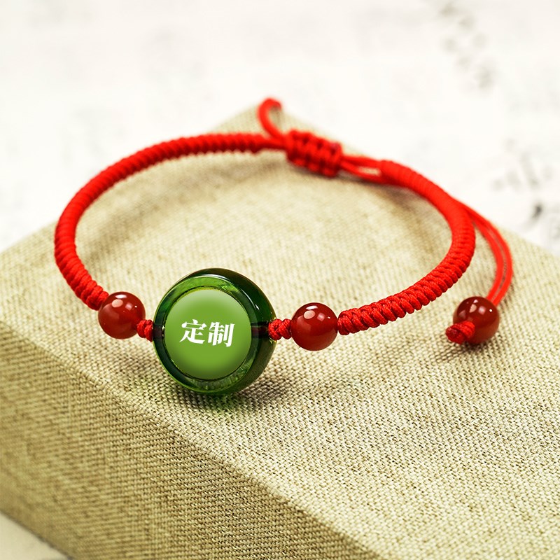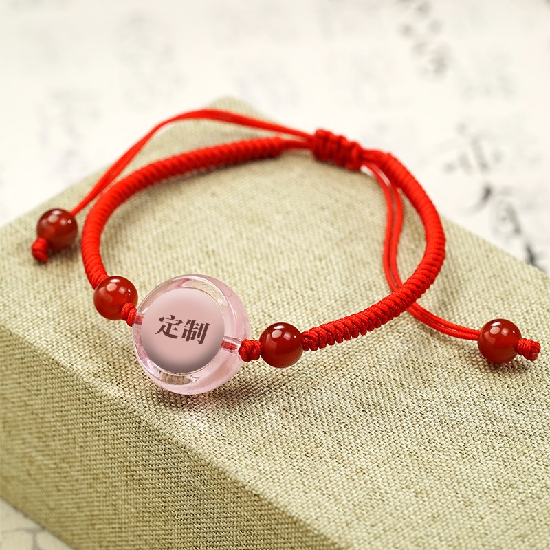 楞严咒手链琉璃材质多色可选小圆C满金刚结手绳图案定制文创饰品