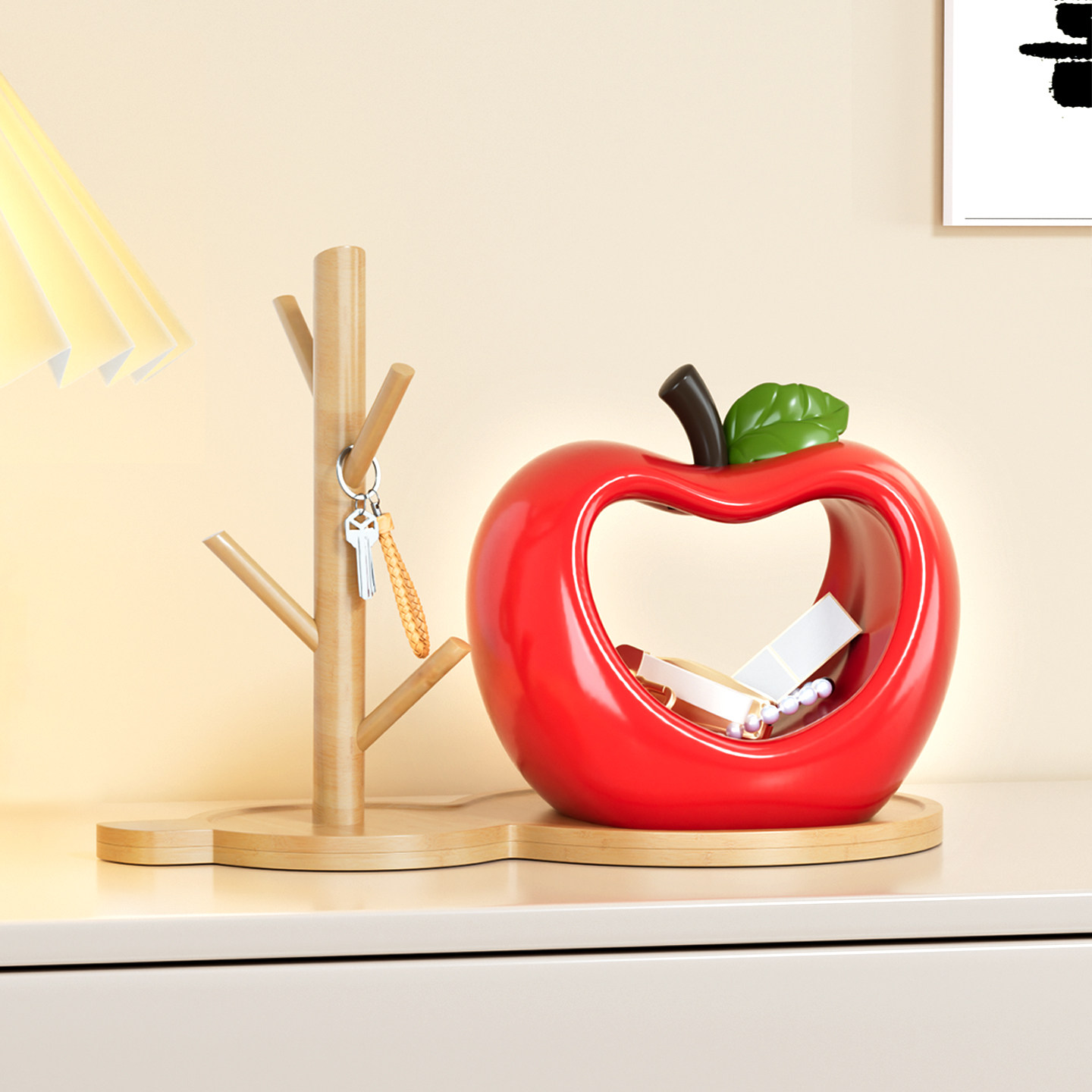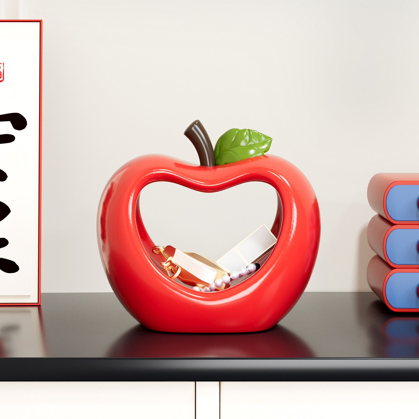 玄关摆件红色苹果造型收纳摆件家居装饰品创意水果储物盒装饰摆件