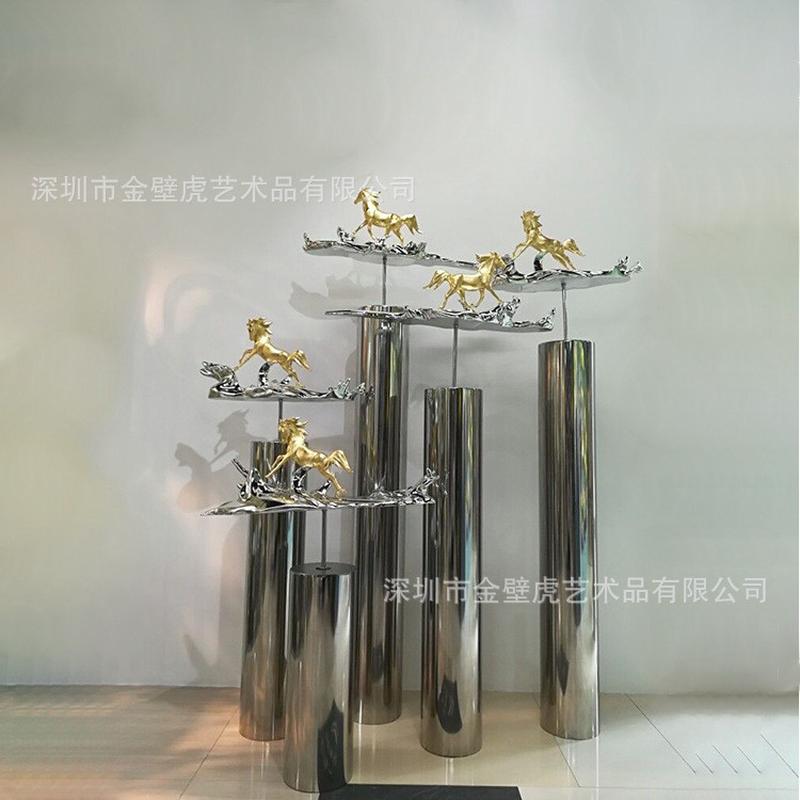 天马行空抽象雕塑售楼处酒店写字楼公区落地金属不锈钢人物摆件