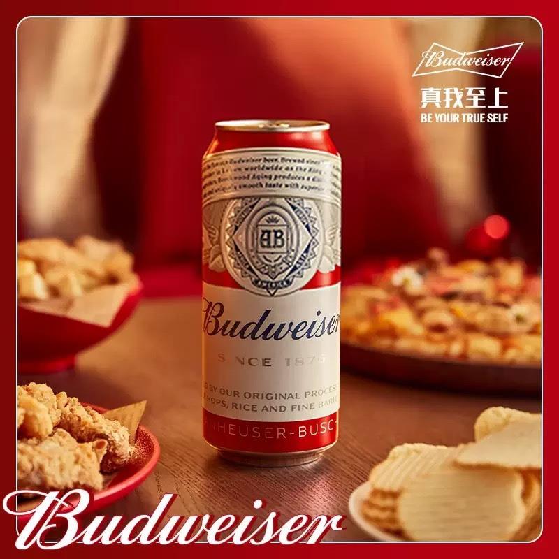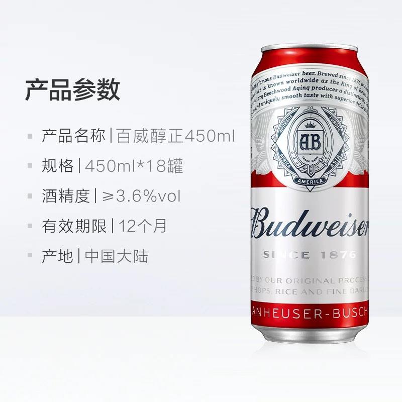 Budweiser/百威啤酒整箱经典醇正红罐拉格450ml*18听无礼袋聚会装