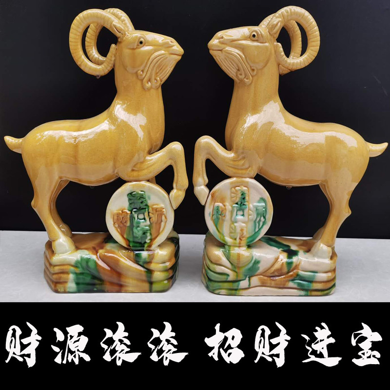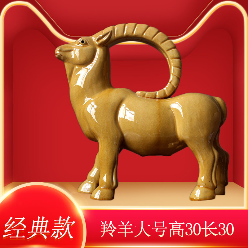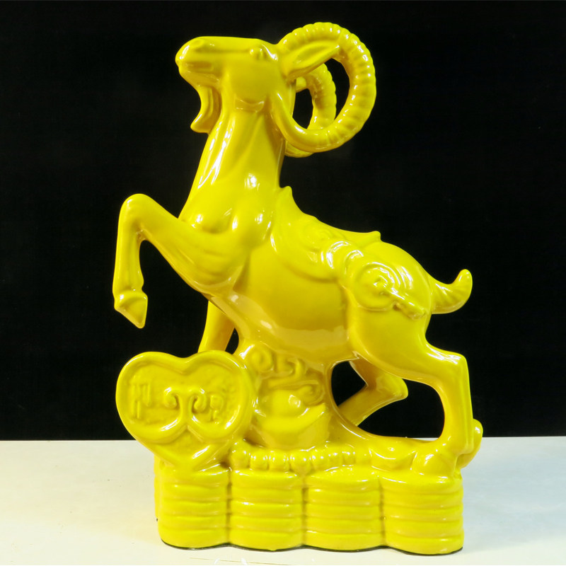 陶瓷山羊羚羊黄色的羊十二生肖摆件办公室玄N关家居装饰工艺品礼