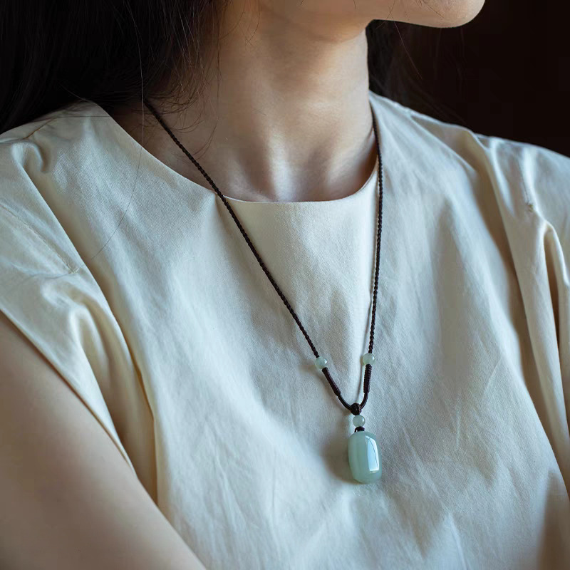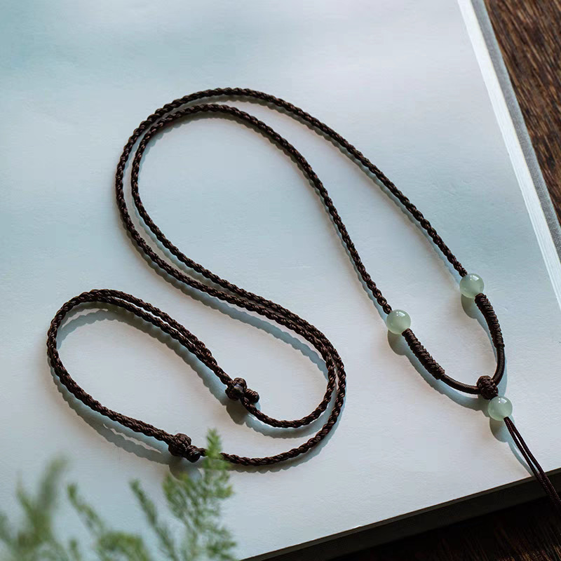 天然和田玉简约款吊坠绳保真玉石挂坠手工编织翡翠黄金佛牌挂绳