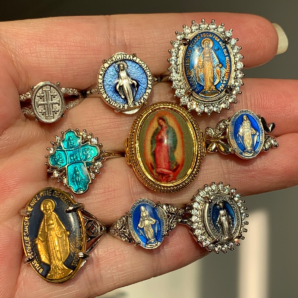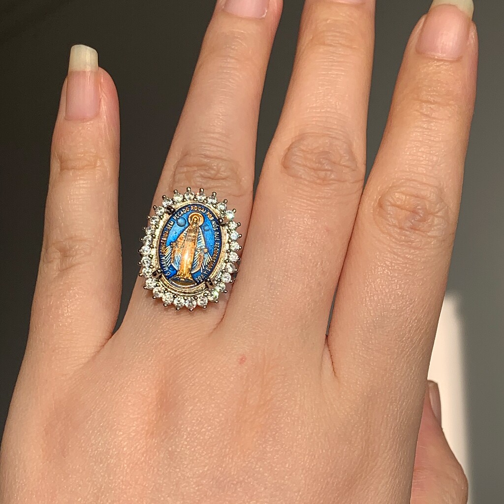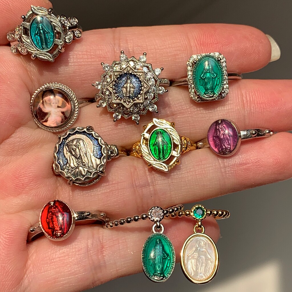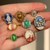 2026欧美蓝色中古董复古人像开口可调节十字架戒指圈vintage女
