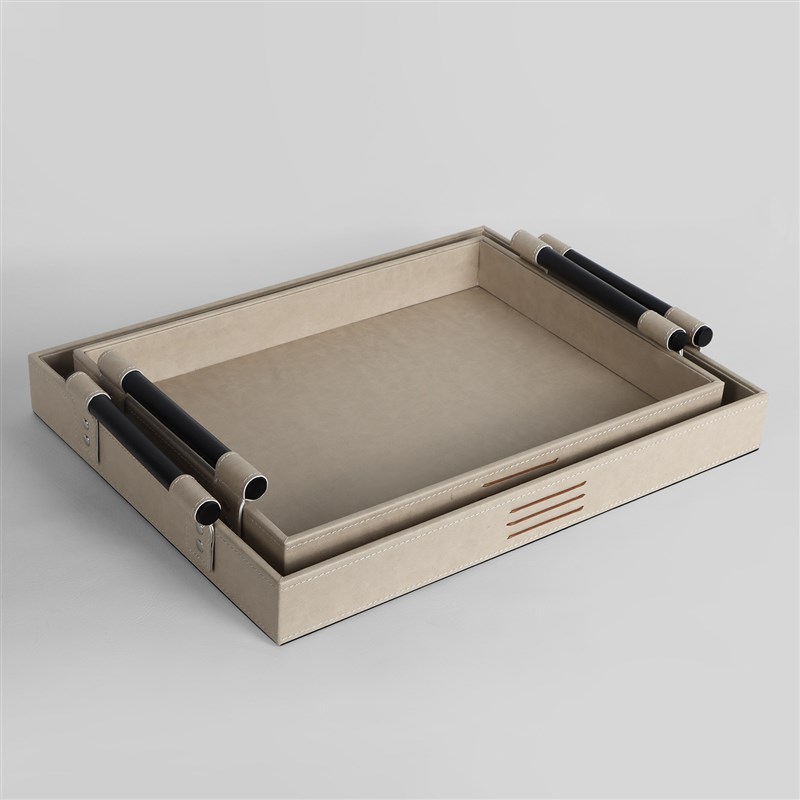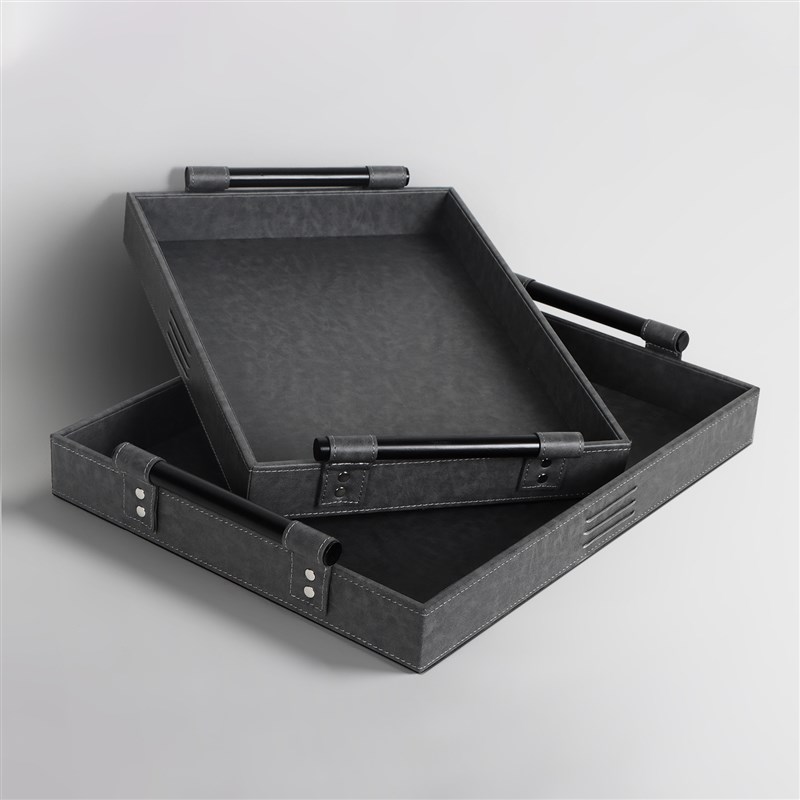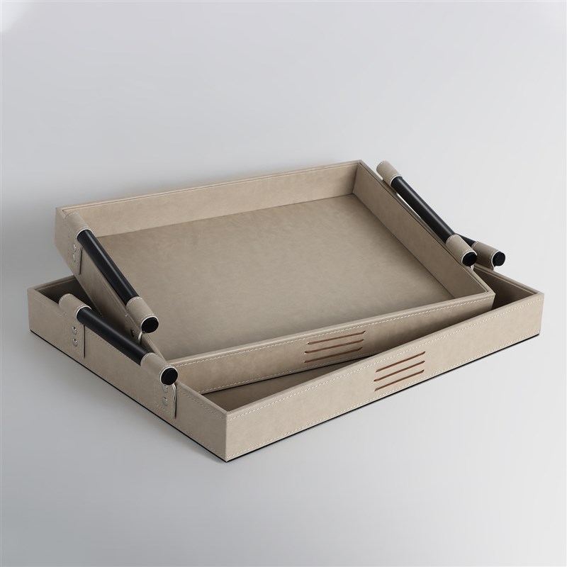 现代简约高端f皮质托盘样板房售楼处酒店客厅茶几桌面装饰轻奢摆