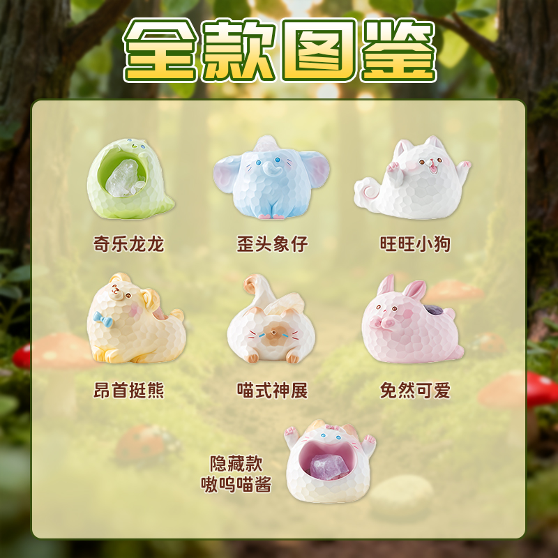 嗷呜萌宠晶灵盲盒小动物桌面摆件精美礼物天然晶石装饰摆件礼品
