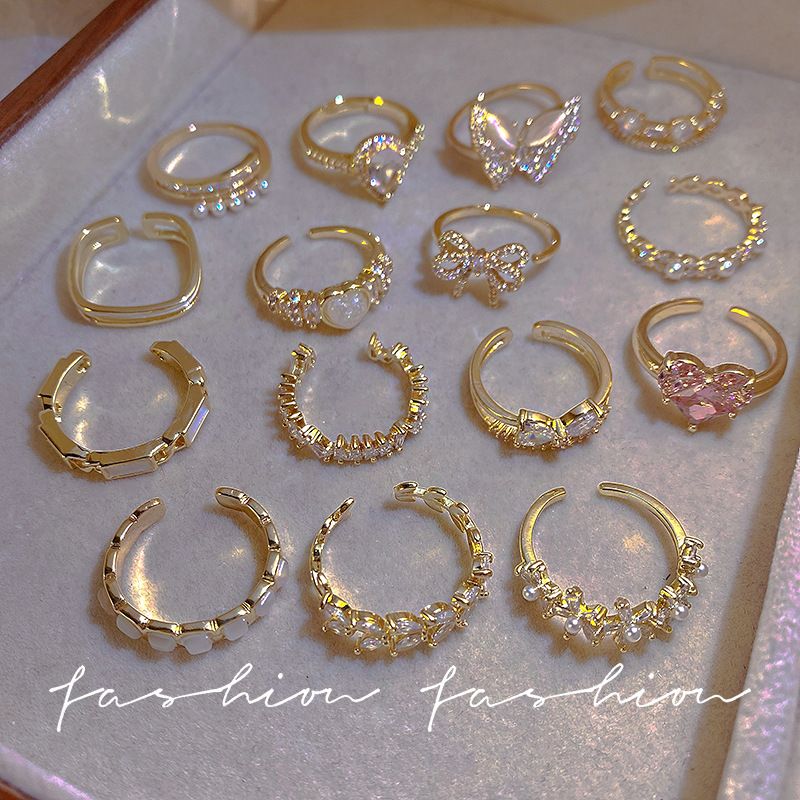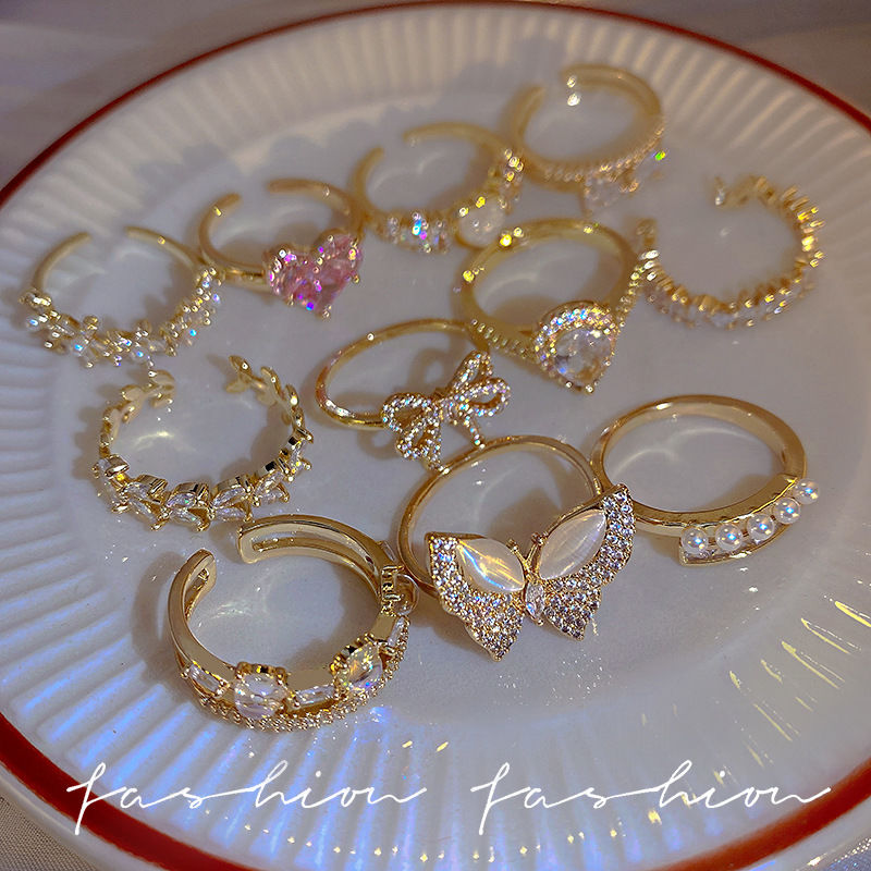 高级感轻奢珍珠锆石戒指女小众设计感开口食指环复古时尚个性简约
