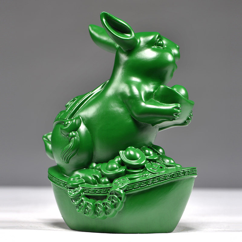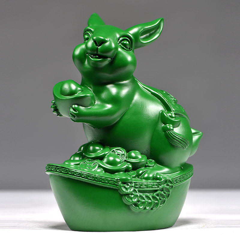 绿色木兔生肖木头兔工艺品家居实木质雕刻桌面装饰品客厅摆设