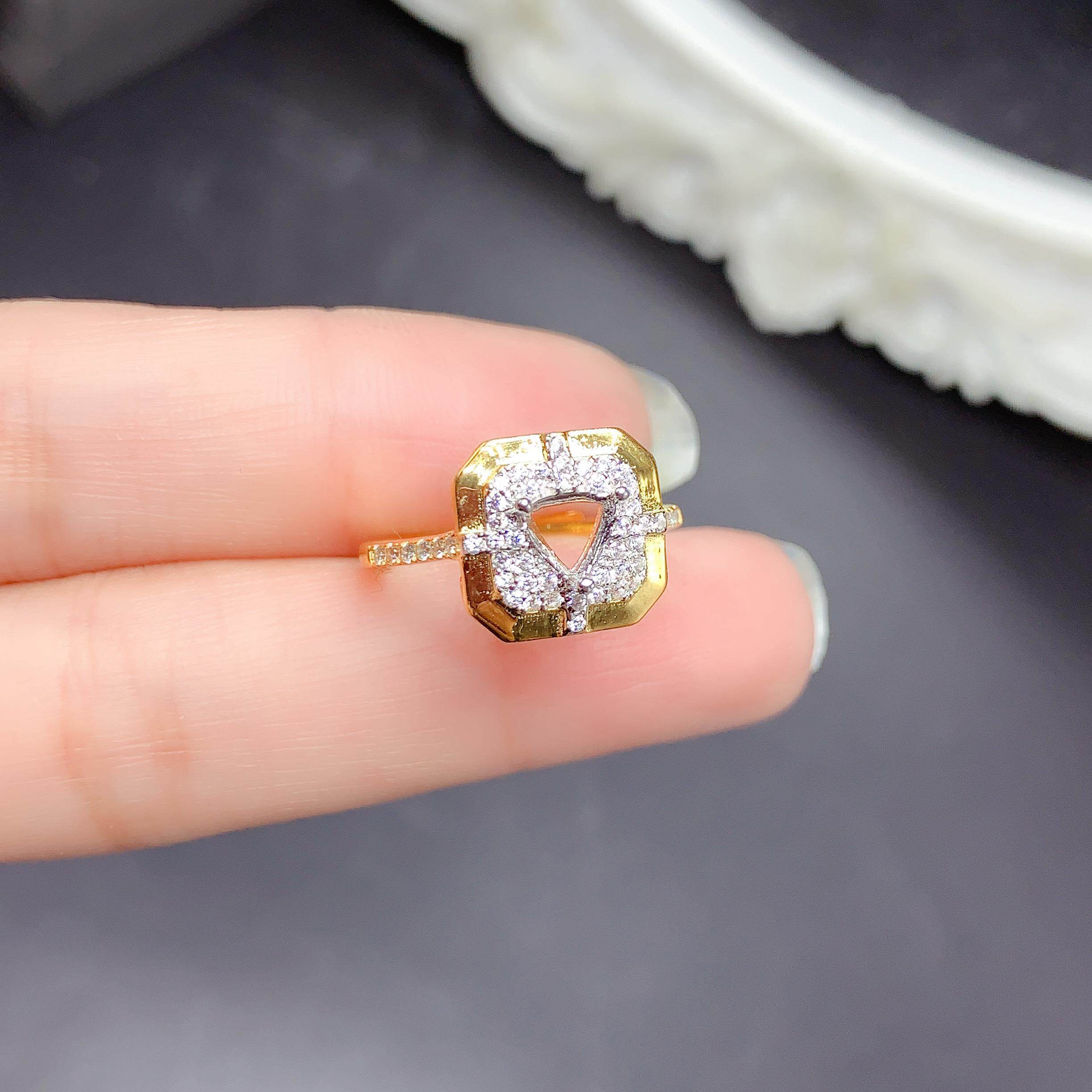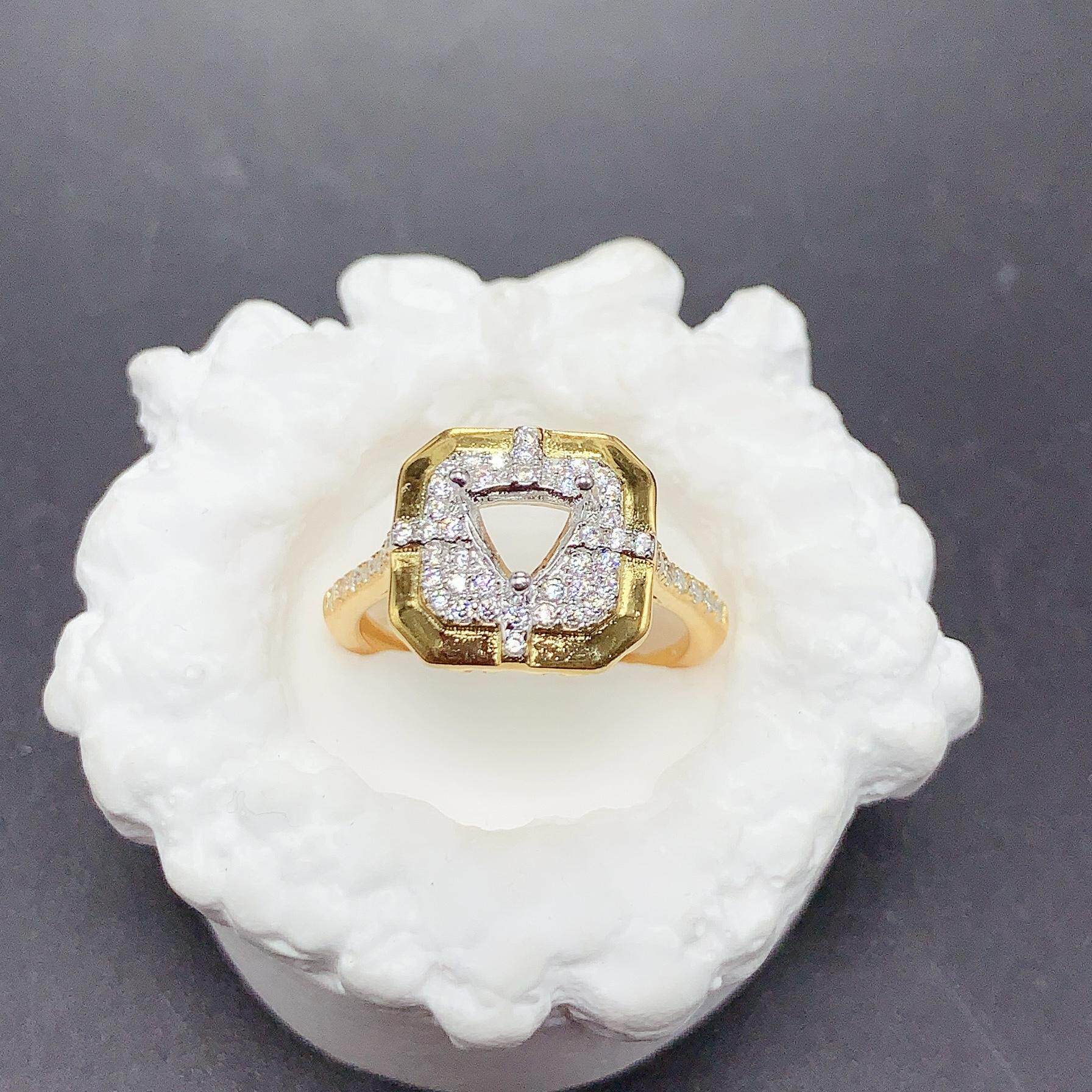 新款豪华经典个性S925银镀金戒指空托镶嵌三角5*5mm彩宝祖母绿托