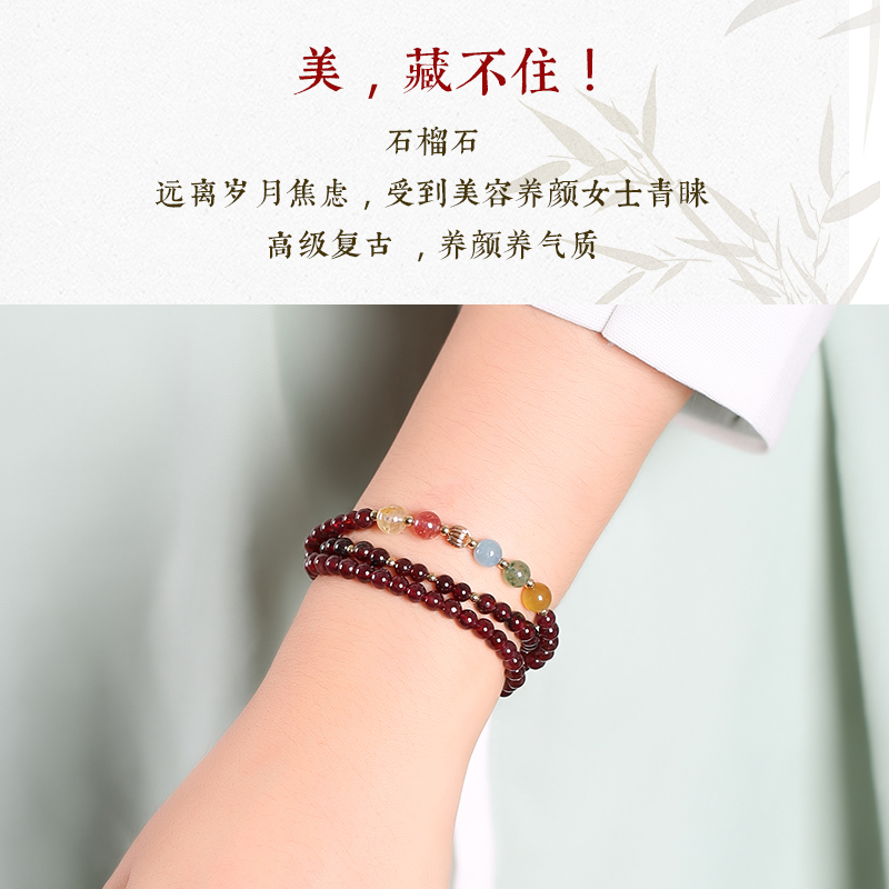 五色多宝石榴石手链手串女