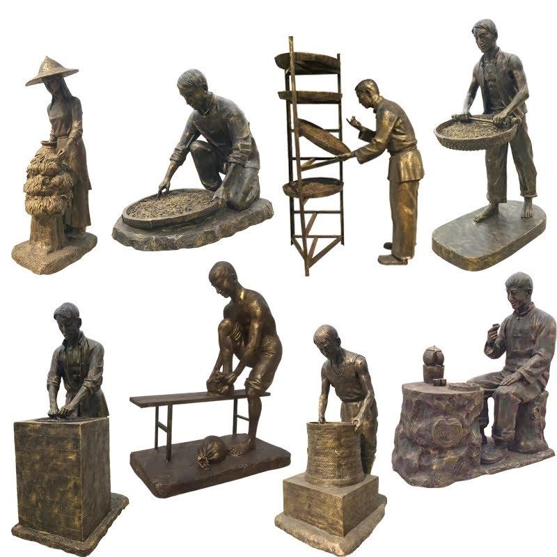 玻璃钢茶文化雕塑仿铜p人物制茶工艺流程商业街广场喝茶人物雕塑