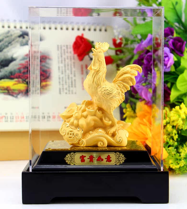 绒沙金鸡摆件十二生肖鸡年吉祥物书房办公室开业年终奖工艺品摆设