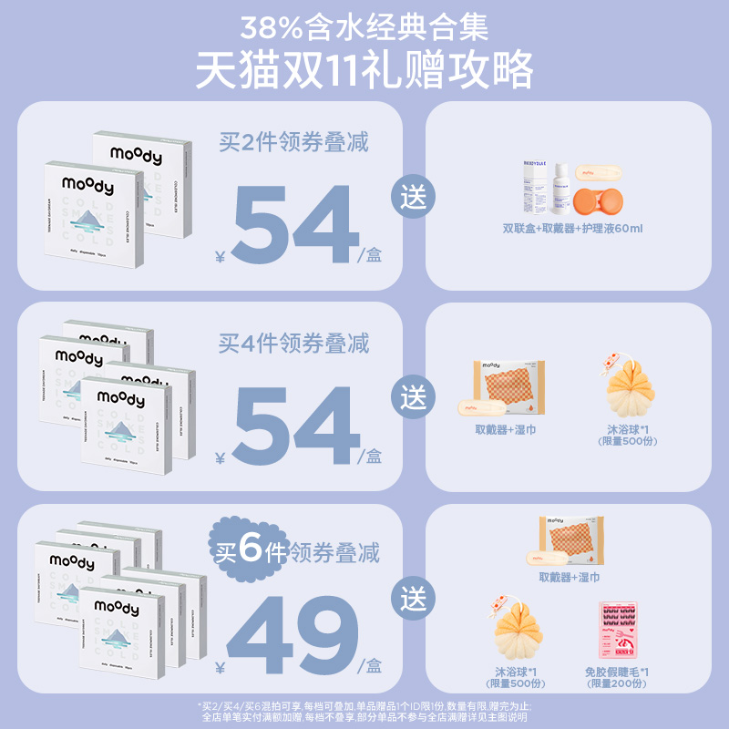 [双11加购]moody美瞳日抛经典38%低含水长戴彩色隐形眼镜10片