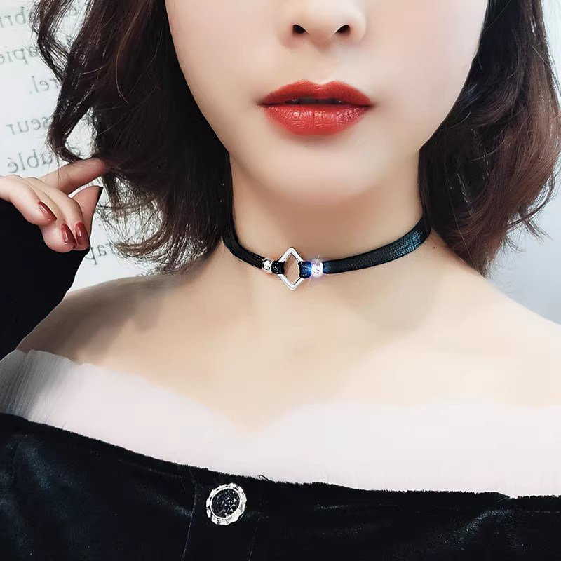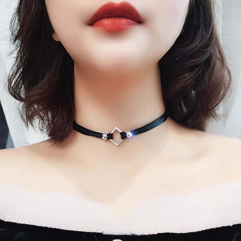 复古choker日系皮绳颈带钛钢项链女锁骨链ins冷淡风简约网红气质