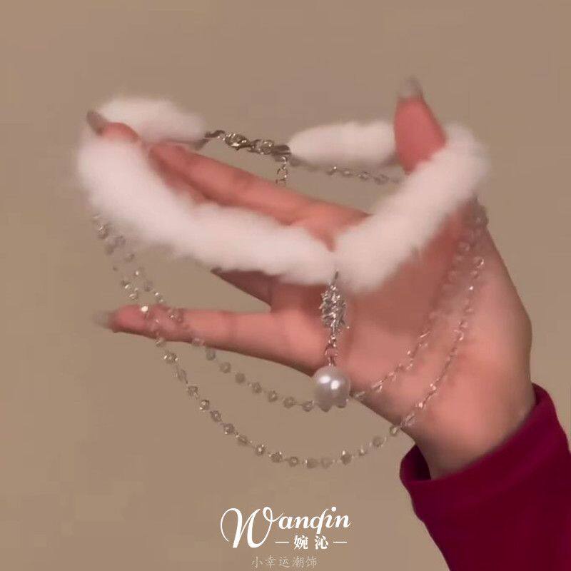 「冬日初雪」纯欲风白色毛绒雪花项链圣诞节韩系甜美choker锁骨链