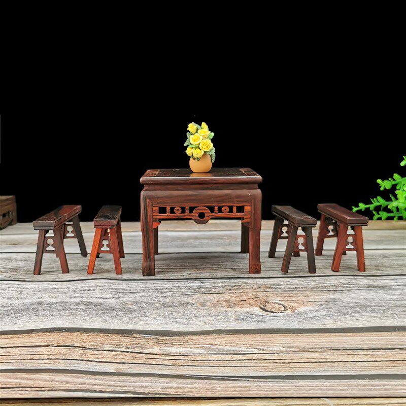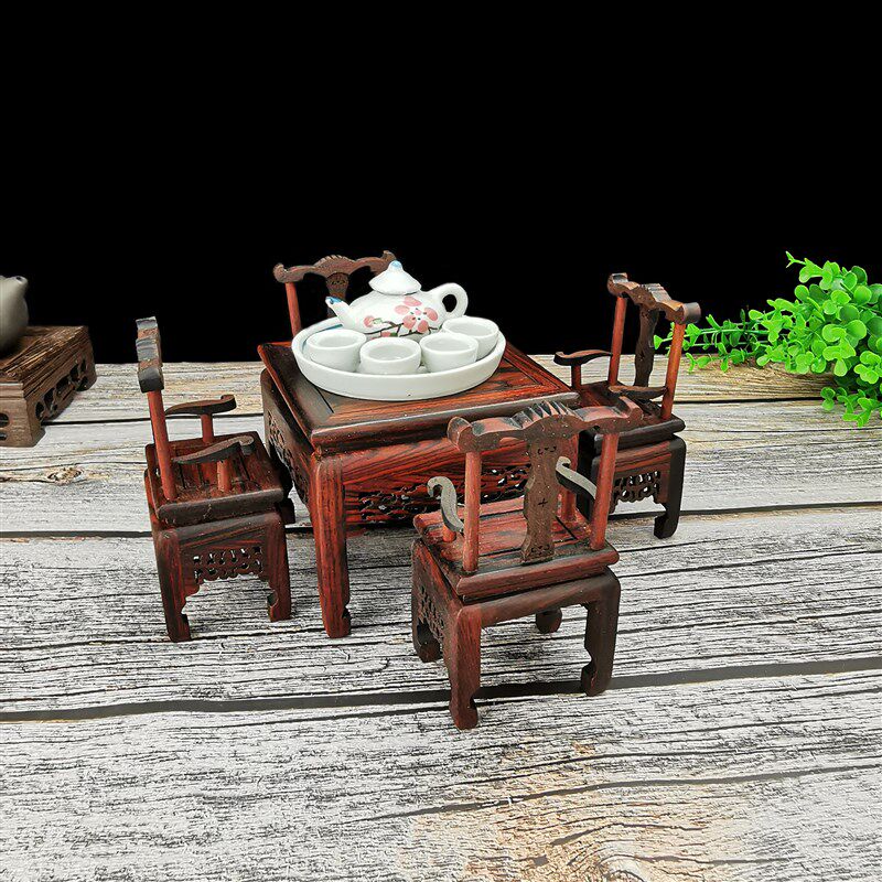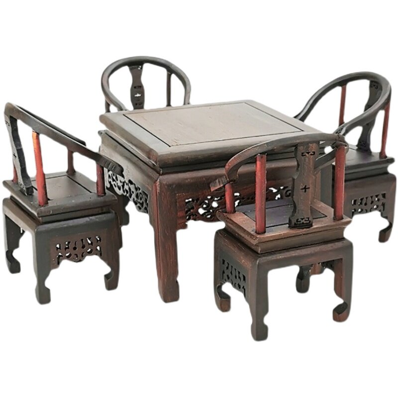 紫檀微型方桌古典桌椅模型蛋糕装饰椅子复古迷你娃屋明清家具摆件