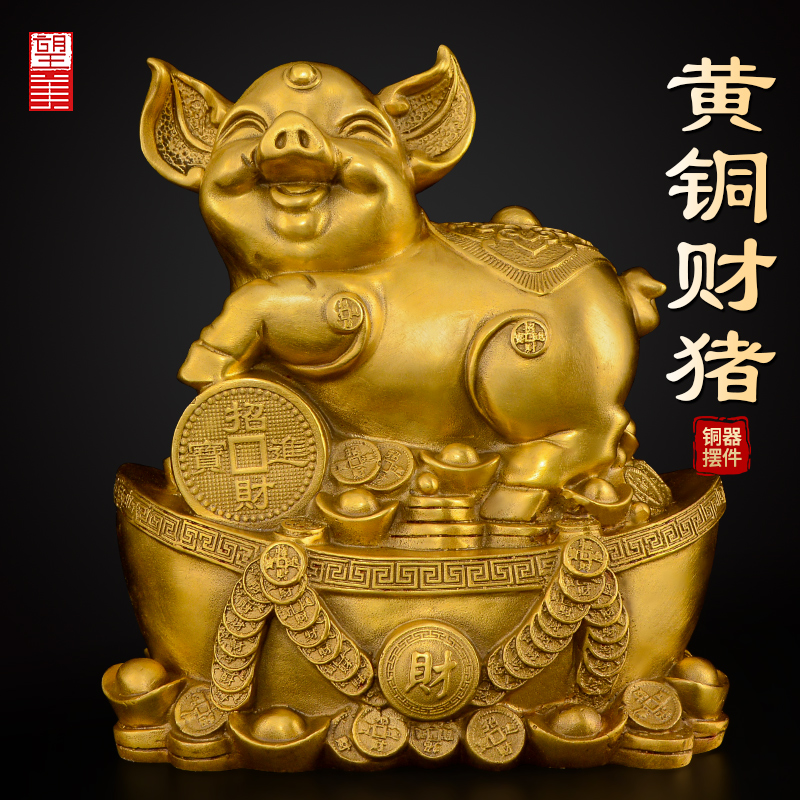 铜猪摆件黄铜猪装饰工艺品客厅玄关酒柜猪年礼品金猪店铺开业
