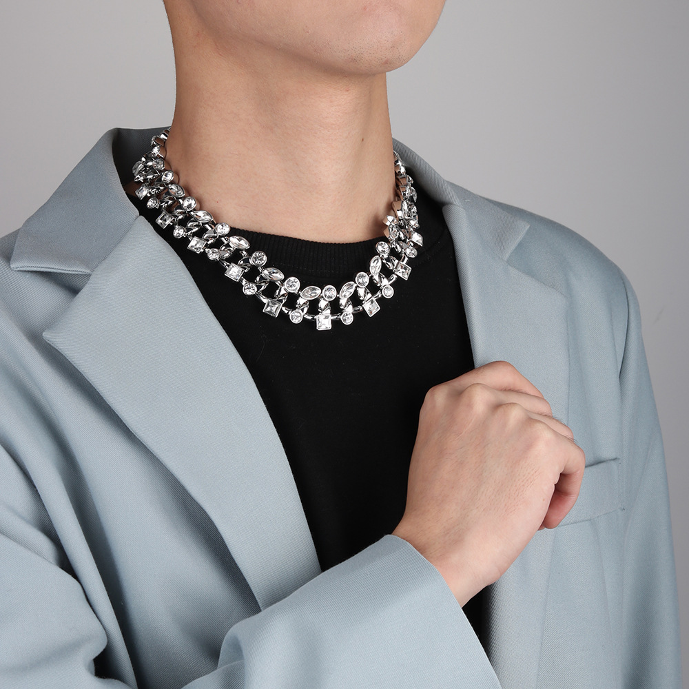 原创设计嘻哈轻奢小众设计混彩项链女22mm彩色古巴满钻男生项链