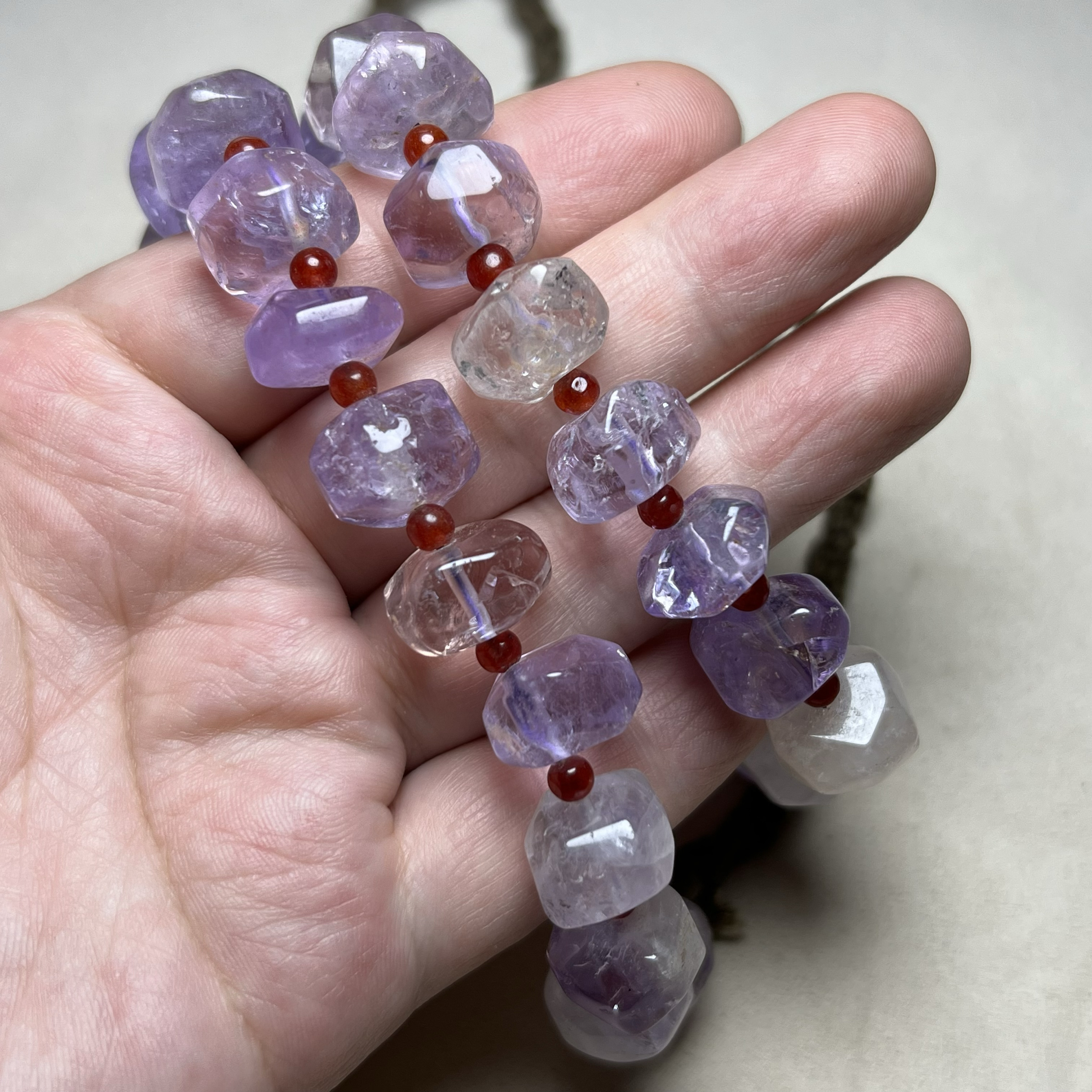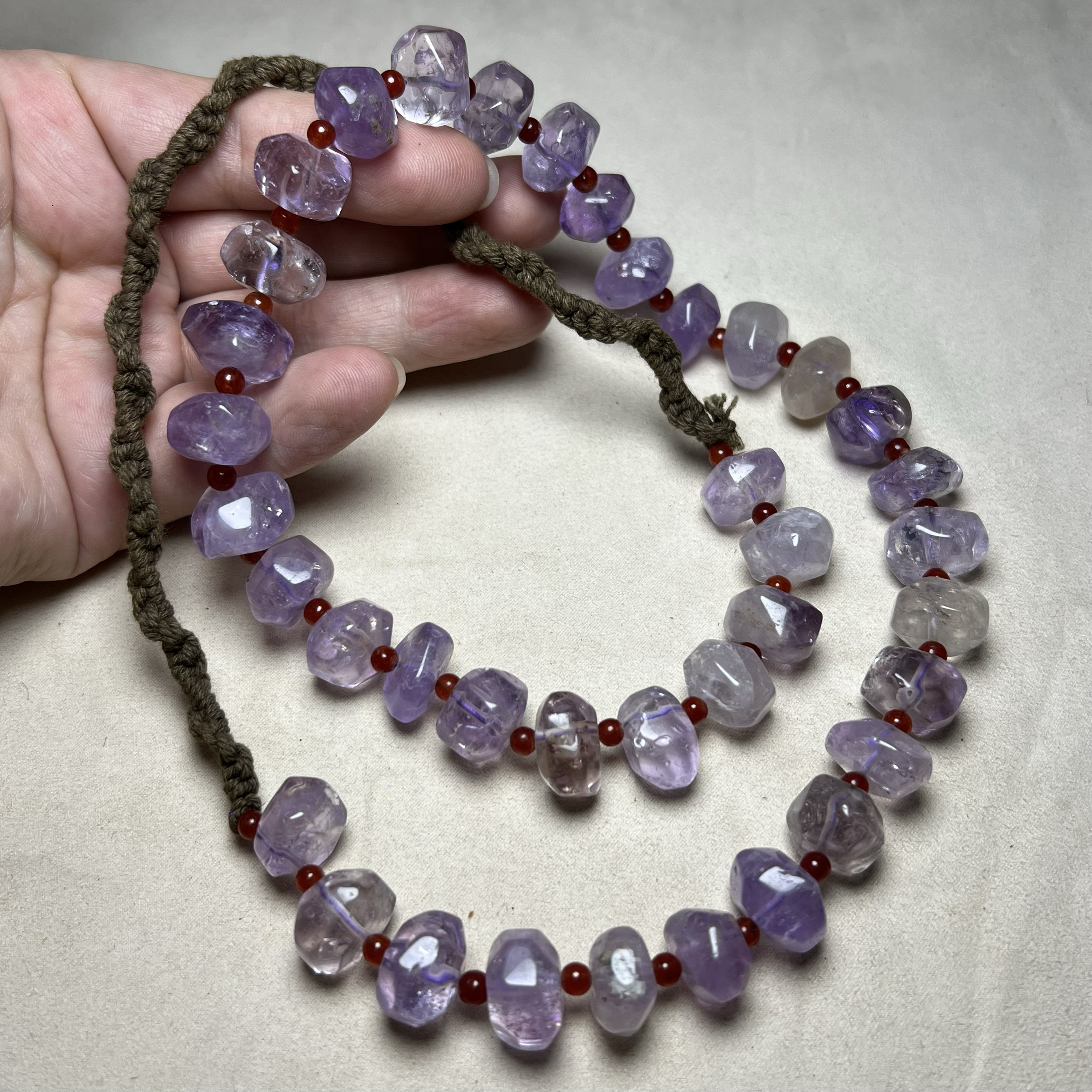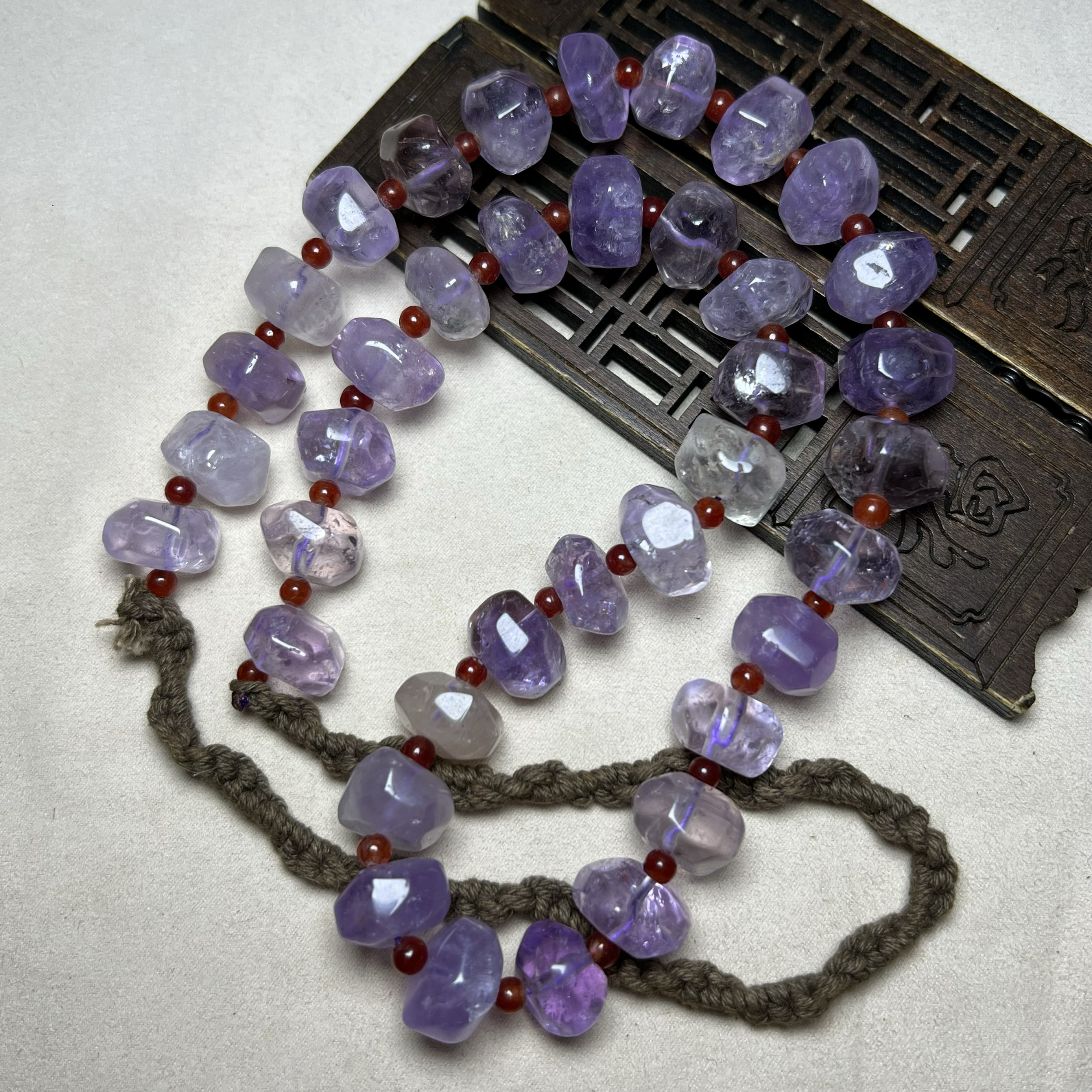 尼泊尔喜马拉雅老紫水晶随形珠项链棱形老水晶手串手链佛珠颈饰
