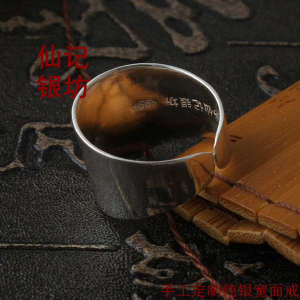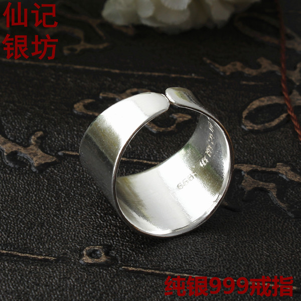 纯手工主君999戒指 纯银食指宽指环 的太阳 女 刻字 情侣戒子韩版