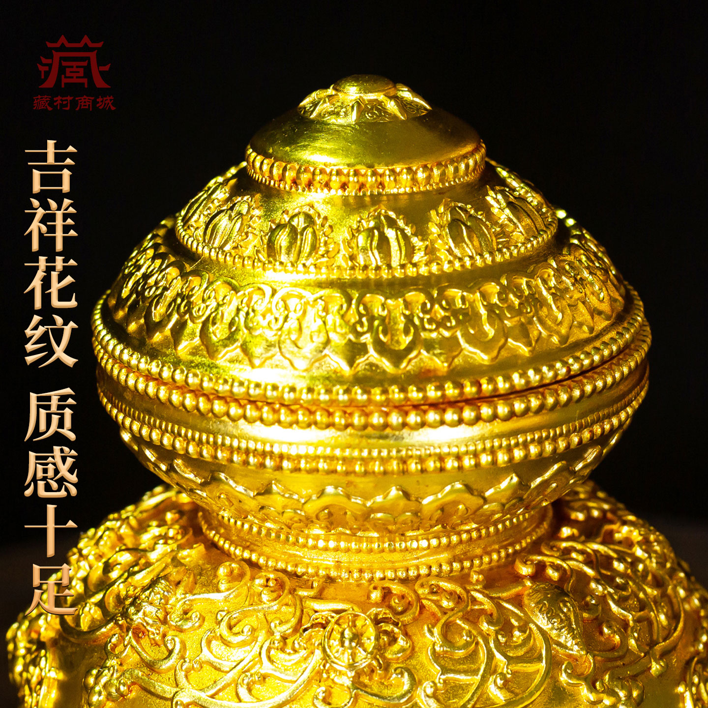藏村藏式铜宝瓶八吉祥雕花龙王宝瓶摩尼宝瓶八供家居装饰摆件
