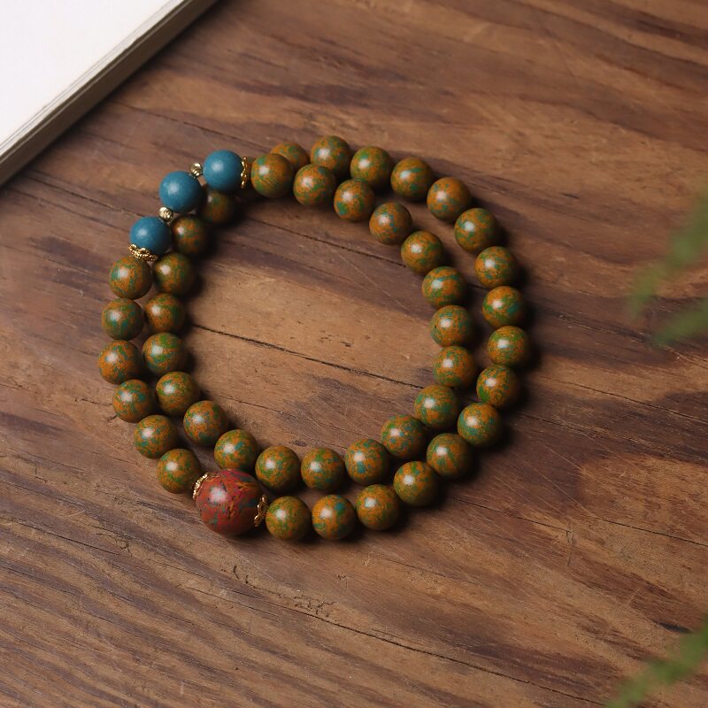 七彩敦煌双圈手串非遗古法五行中药合香珠手串天然息肌丸手链饰品
