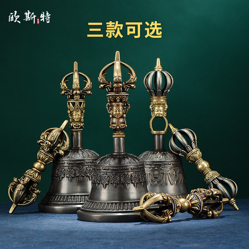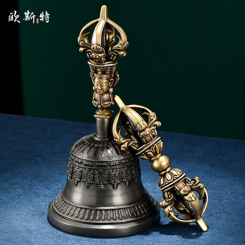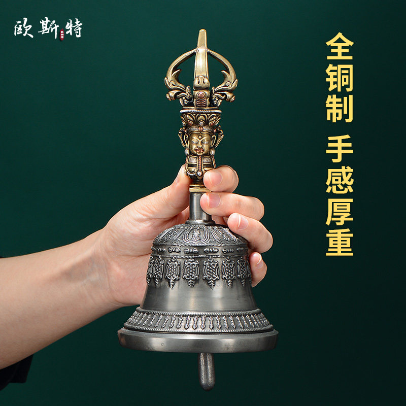 欧斯特 尼泊尔手工金刚铃杵铜铃铛 家居客厅佛具用品摆件碰钟摇铃