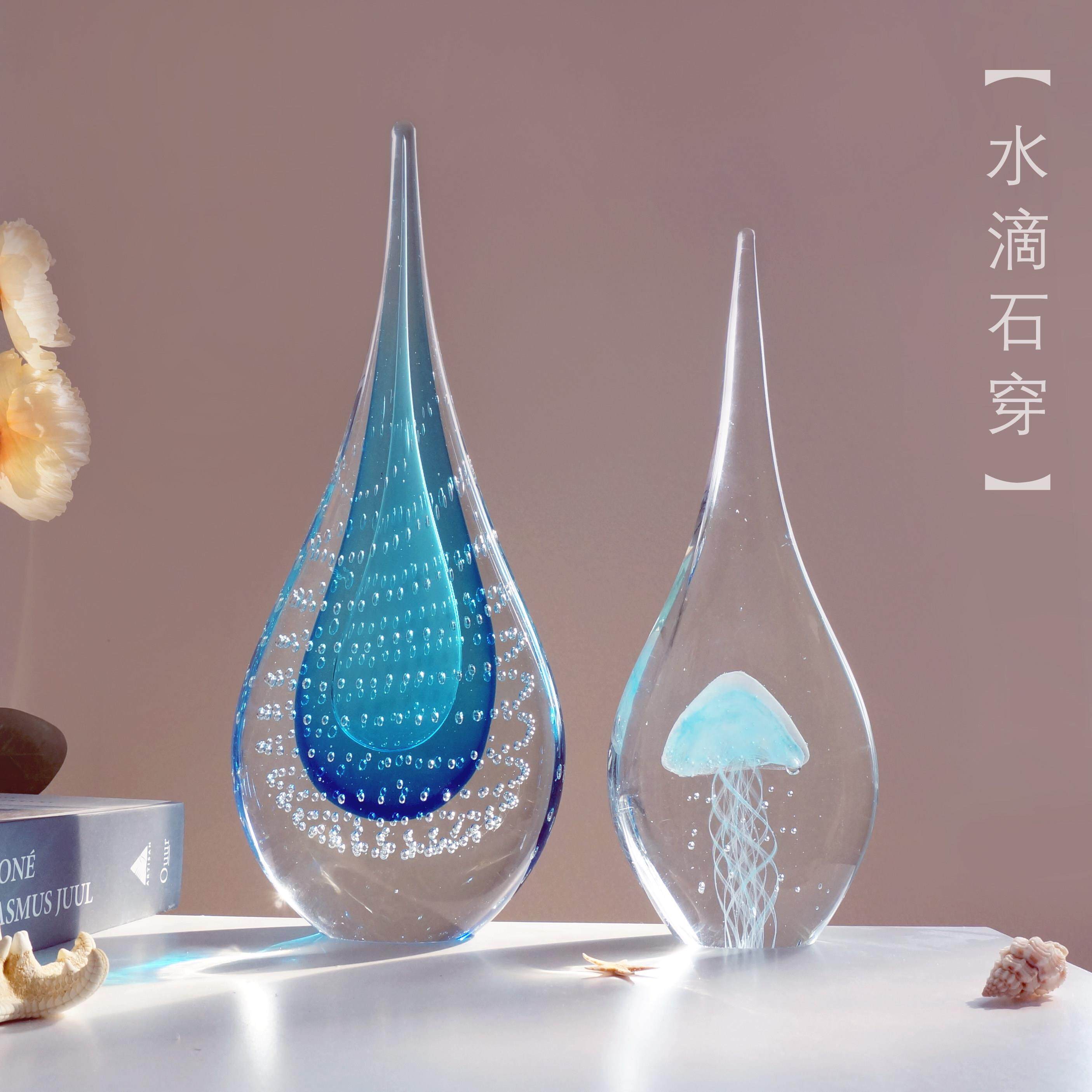 家居客厅装饰大摆件抽象水滴现代轻奢简约创意淄博玻璃琉璃艺术品