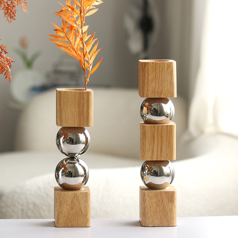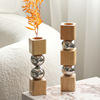 高级感圆球实木花瓶摆件设计师款创意客厅花器插干花轻奢软装饰品