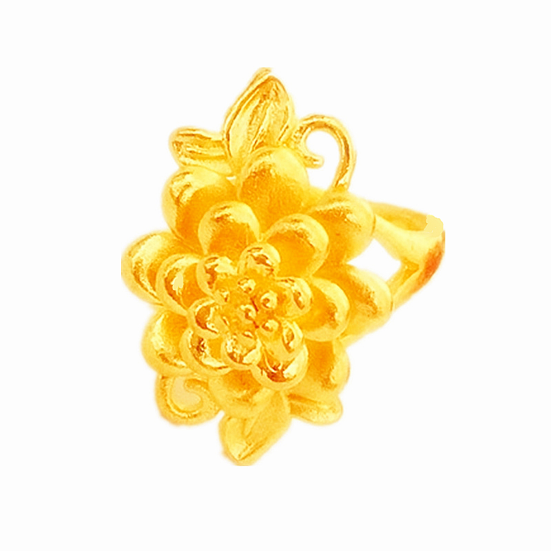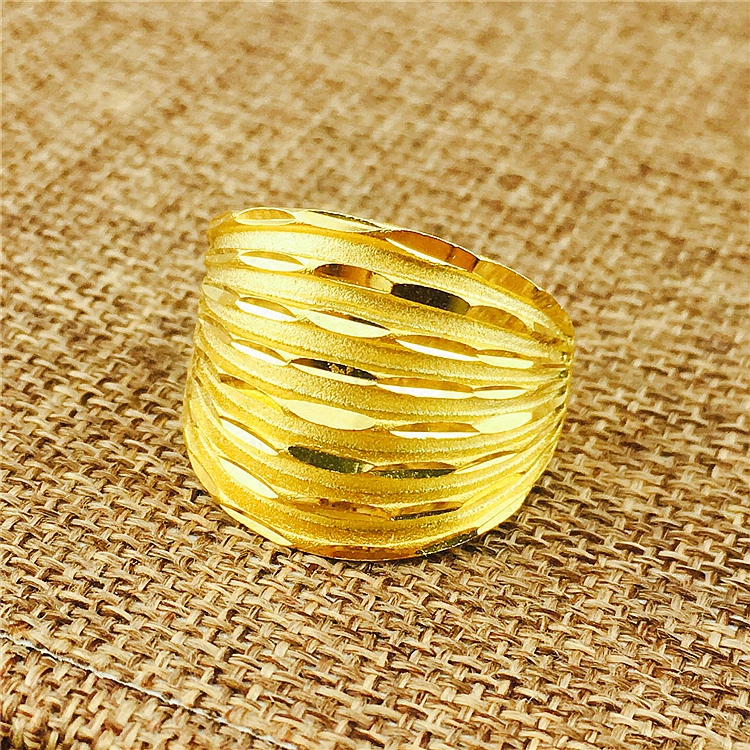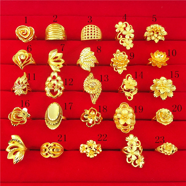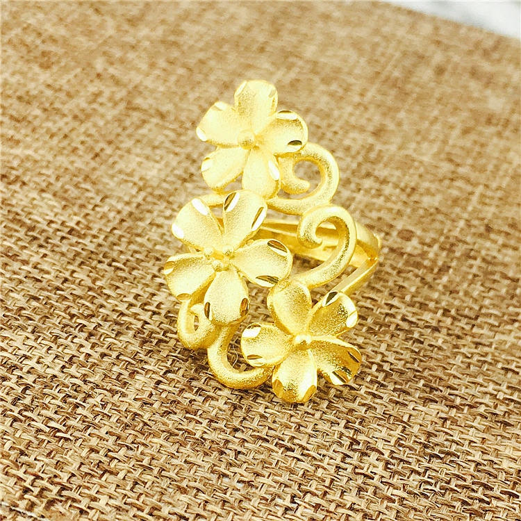 新款越南沙金仿黄金女戒指镀金婚庆道具女士食指开口大花朵戒指