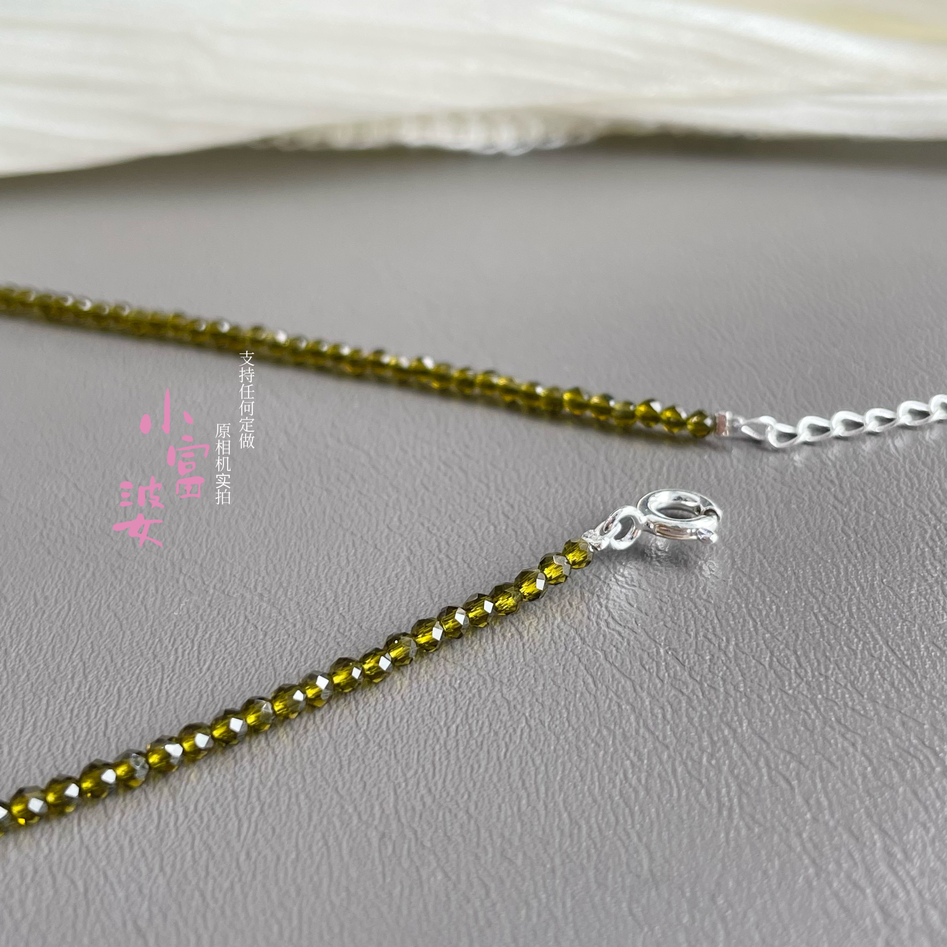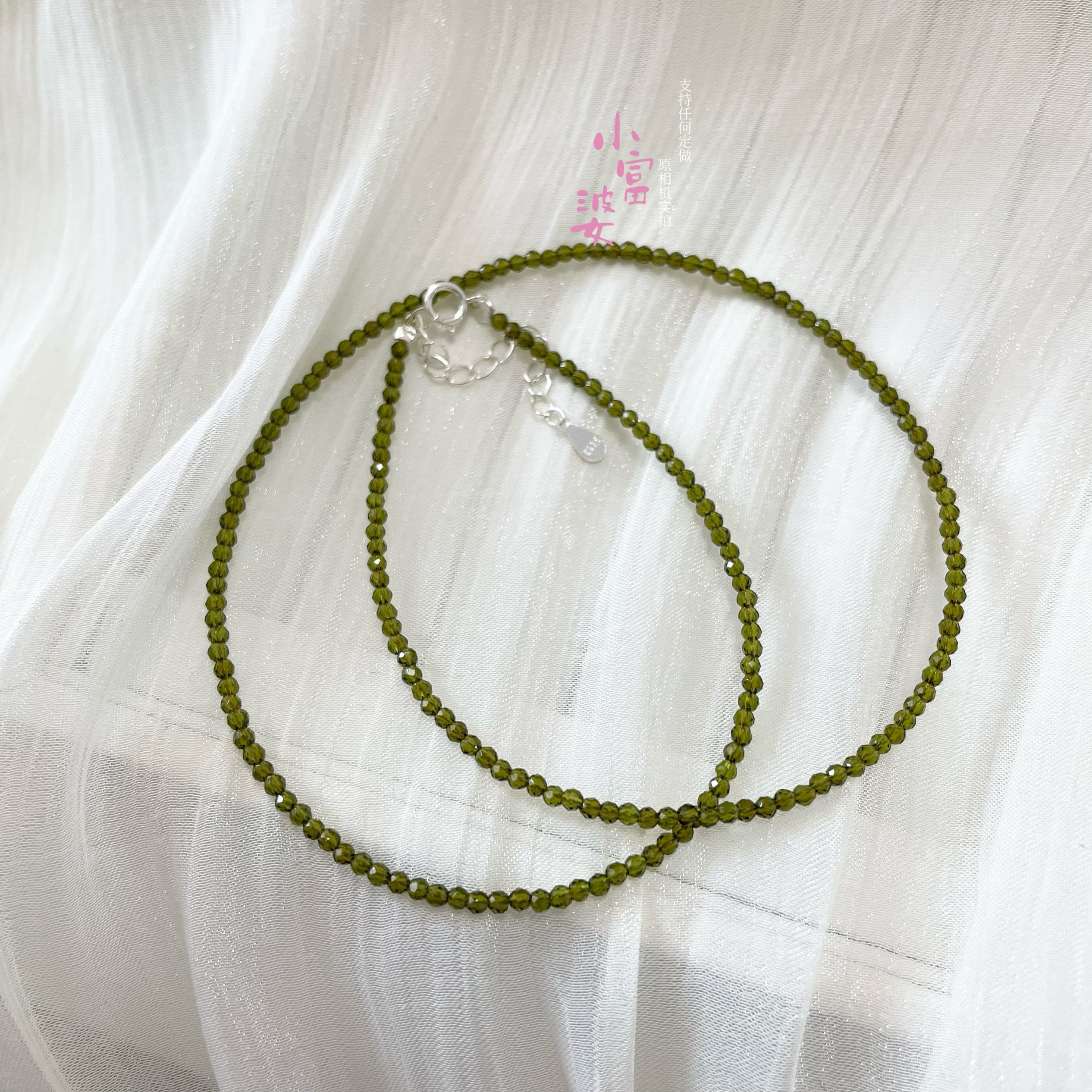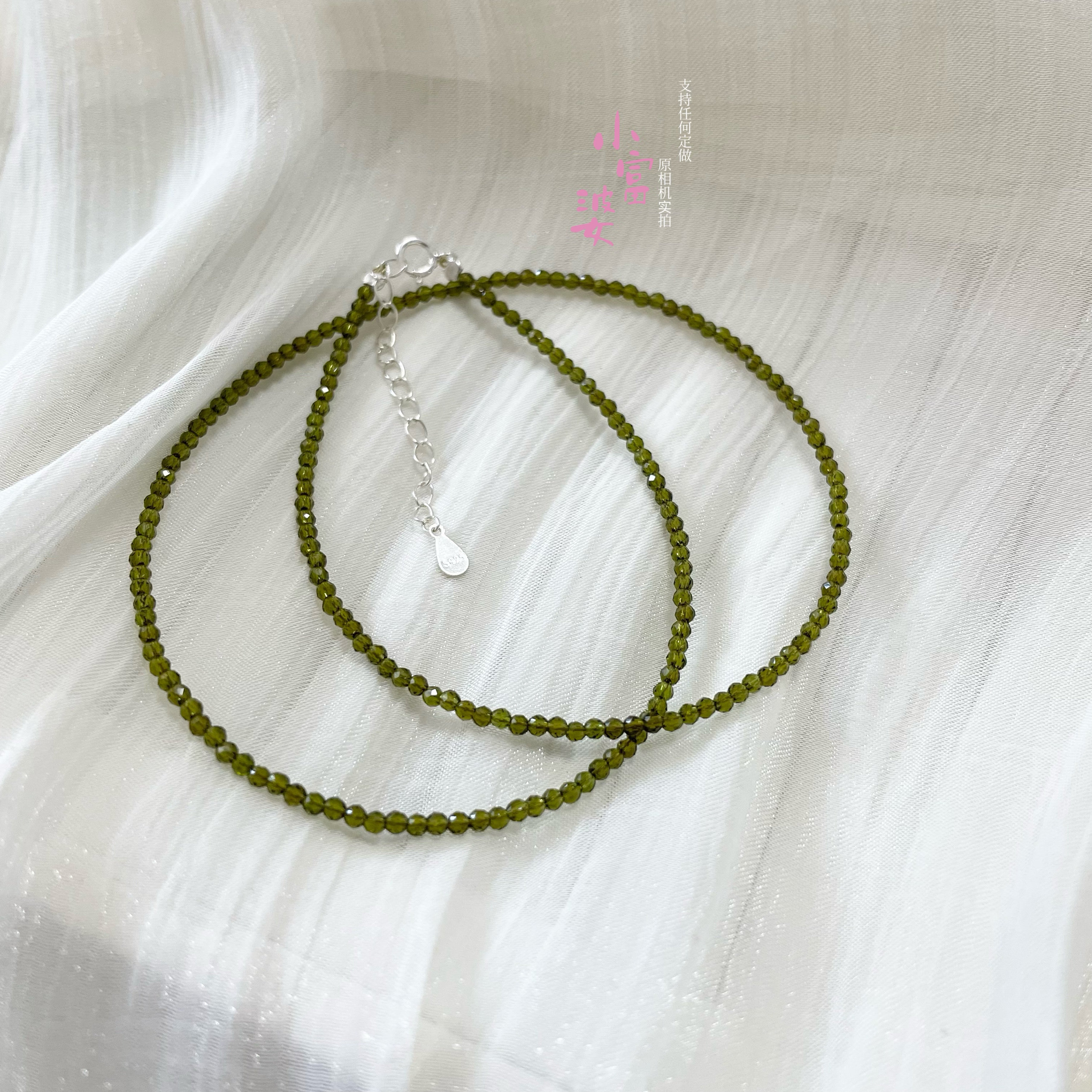【巨显白】翡翠绿橄榄石色极细锁骨链2m绿色新中式复古百搭尖晶链