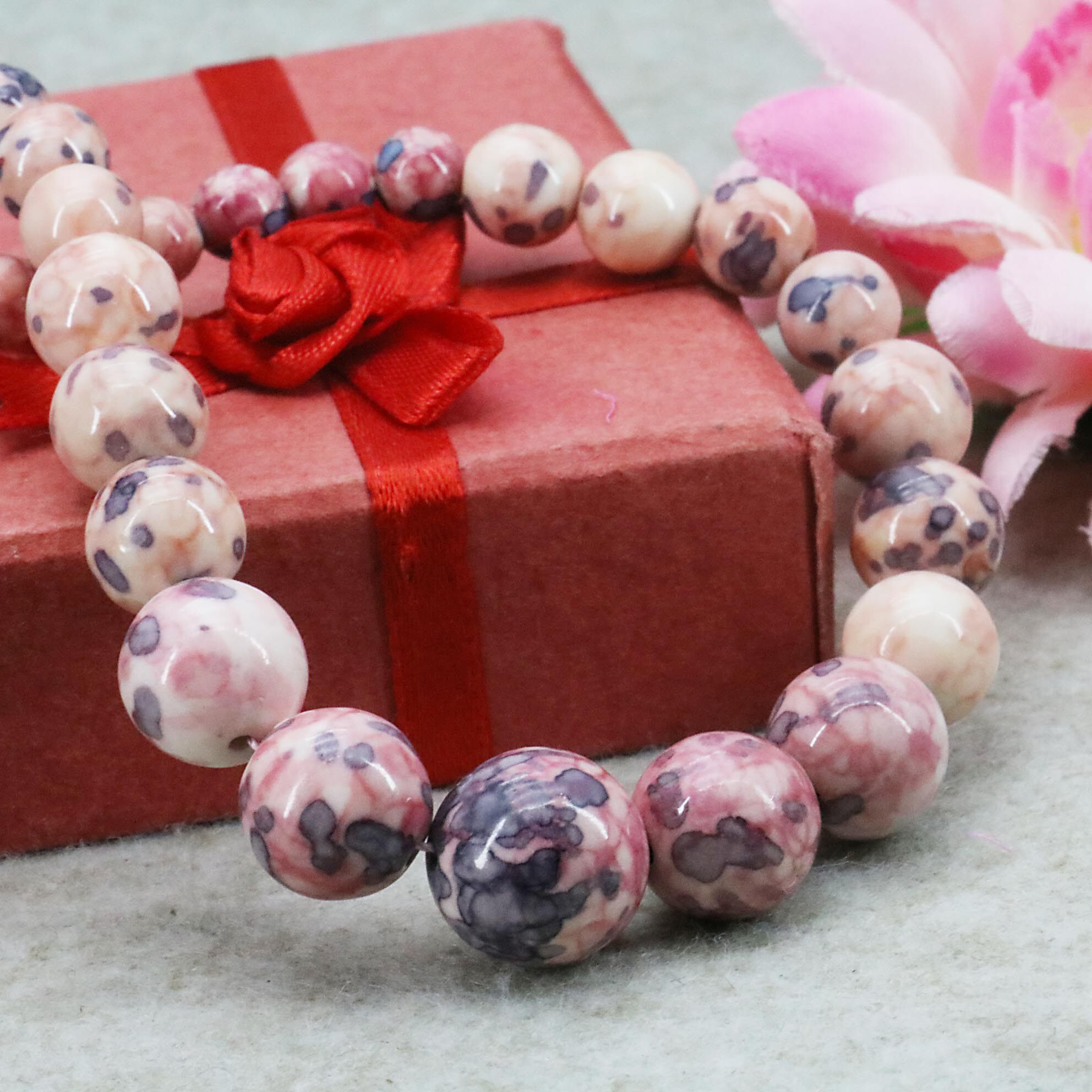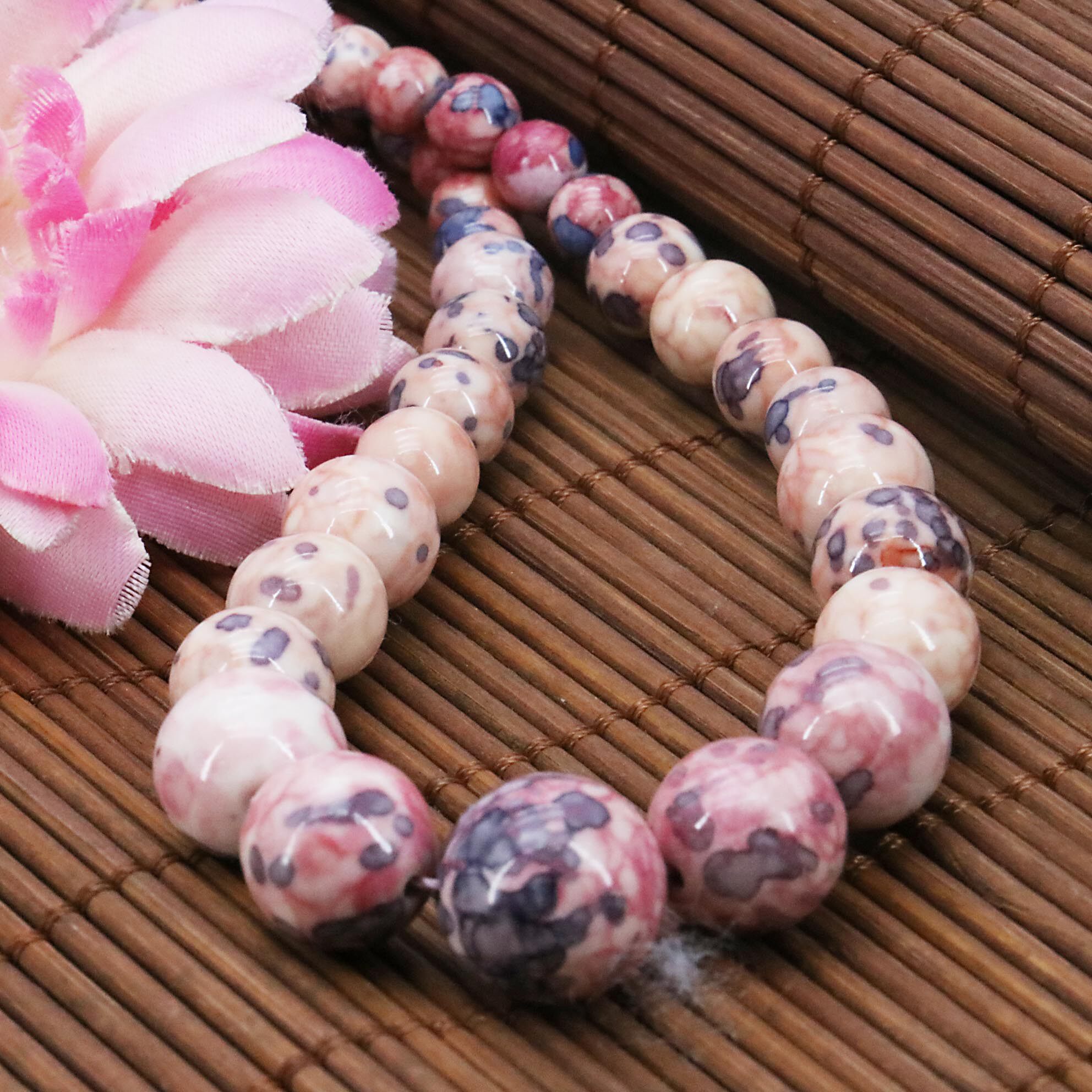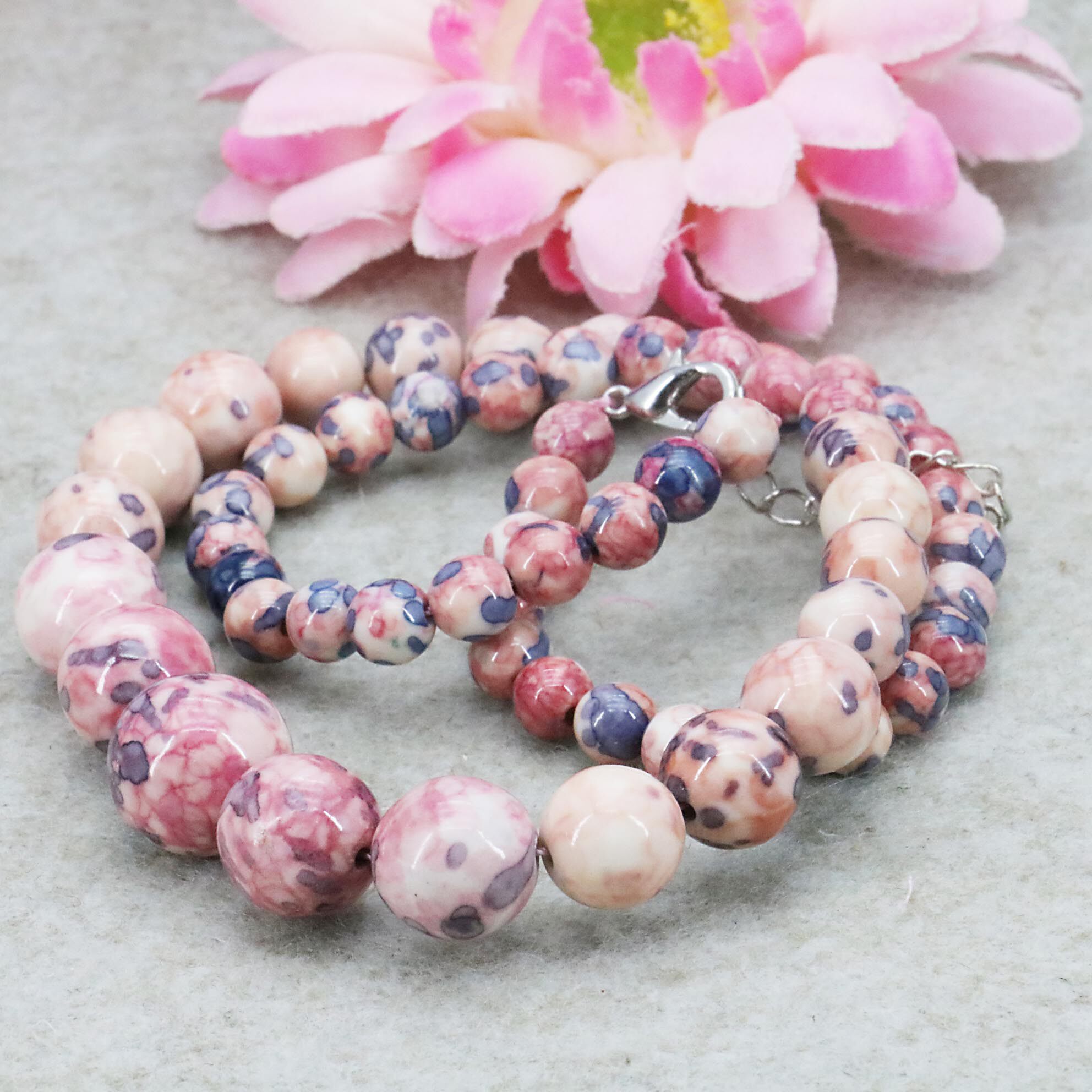 6-14mm天然粉紫色雨花石圆珠塔链项链 手工串珠配延长链短项饰女