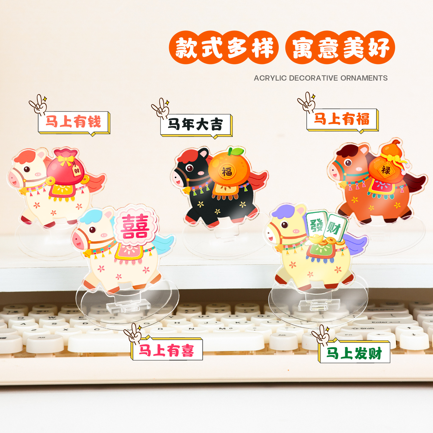 马年摆件亚克力立牌马上有喜桌面创意装饰摇摇乐饰品展示牌展示架