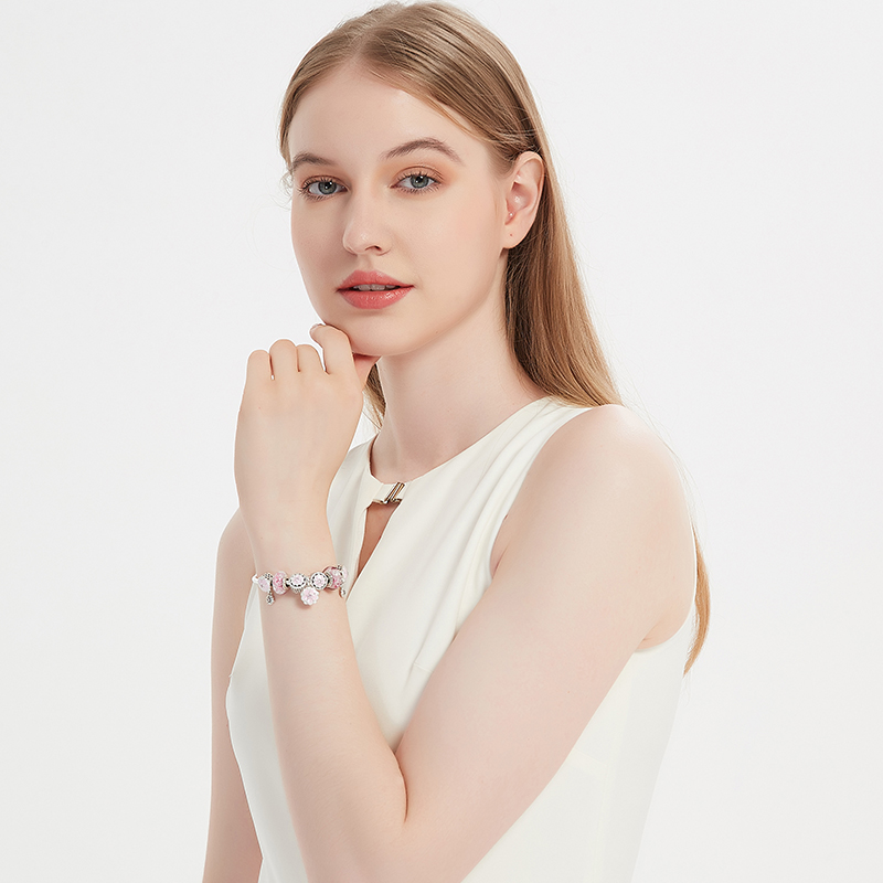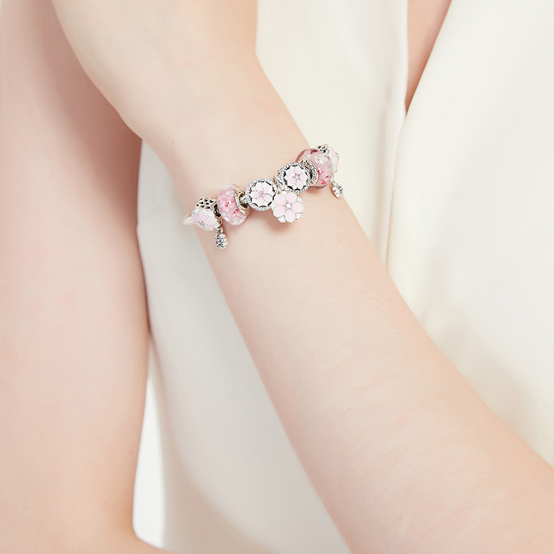 PANGQIA潘家珠子三生三世木兰花吊坠s925纯银手链diy滴胶饰品串珠